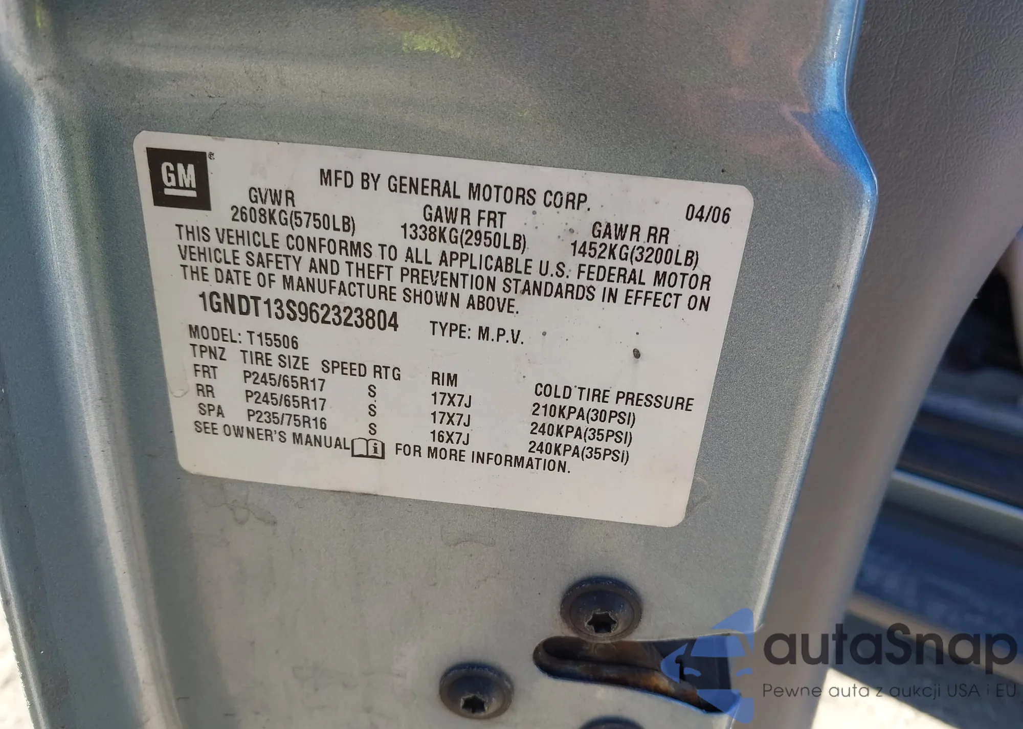 LOT: 43571952 VIN: 1GNDT13S962323804