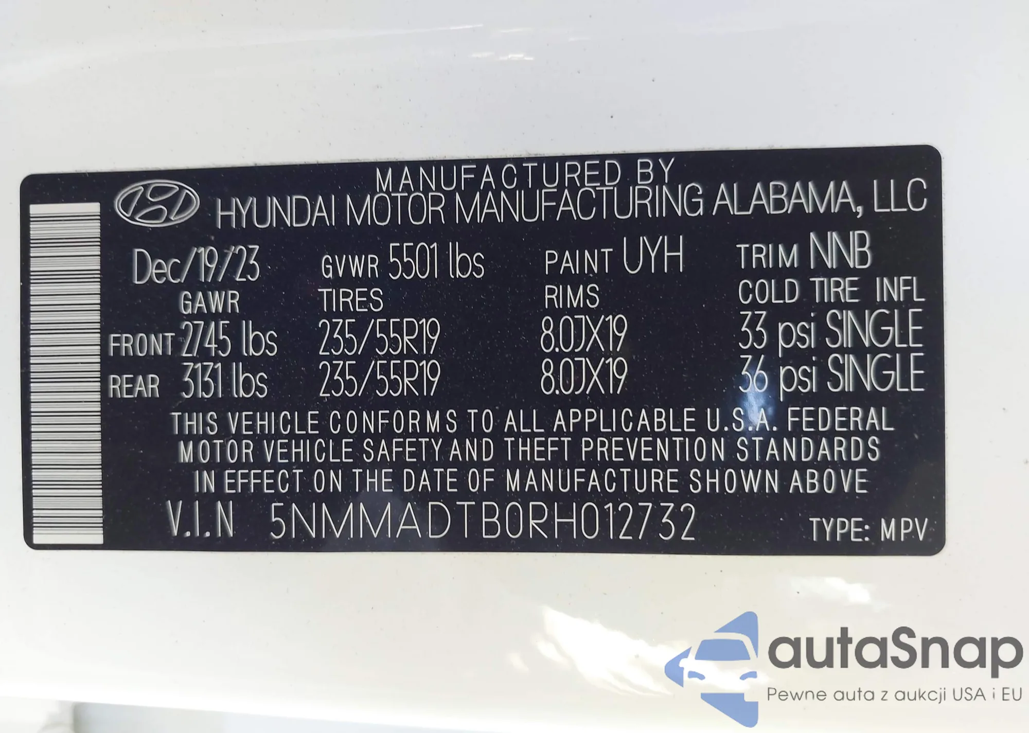 LOT: 43323601 VIN: KM8JCDD18SU307428