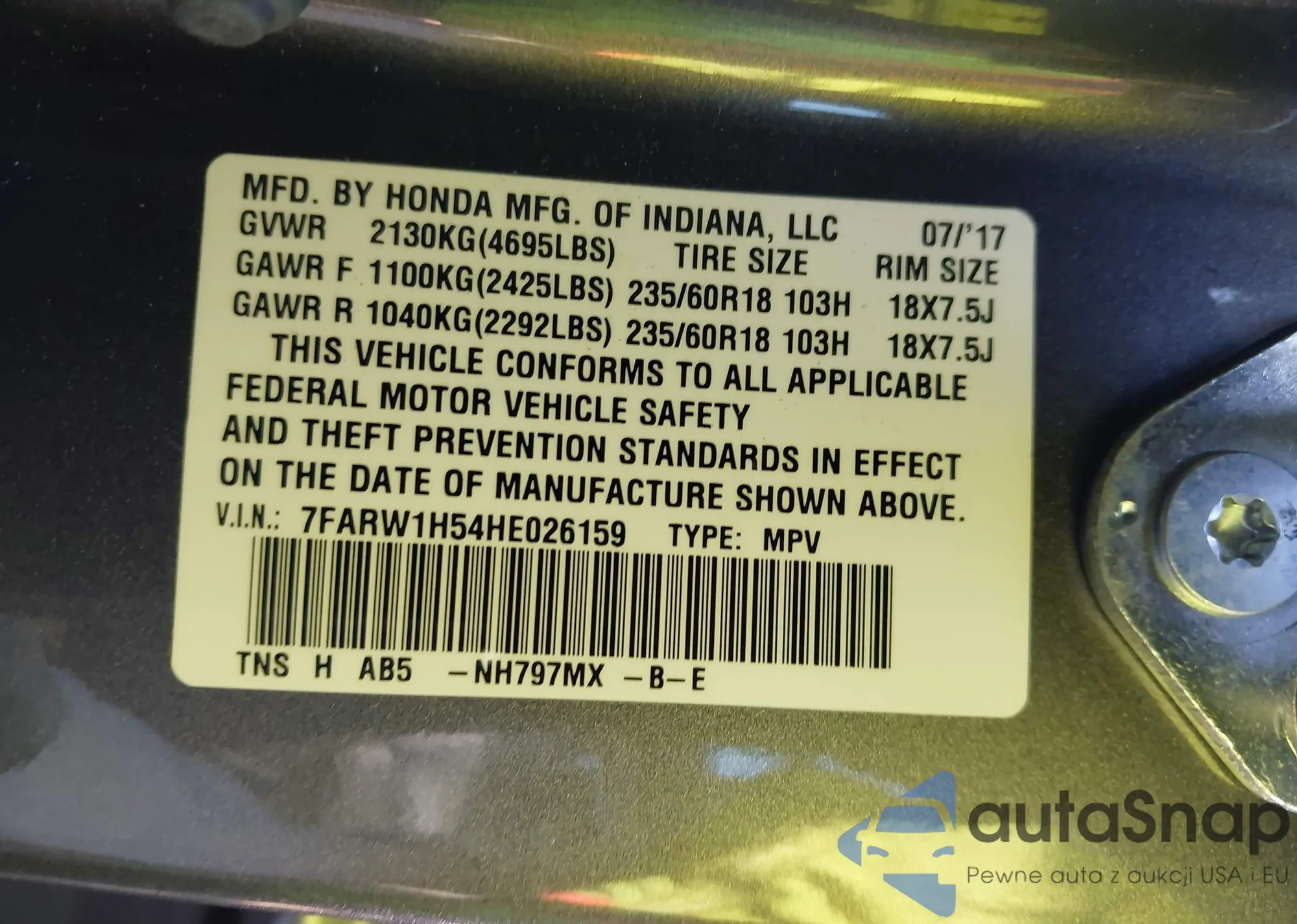 LOT: 43454273 VIN: 7FARW1H54HE026159