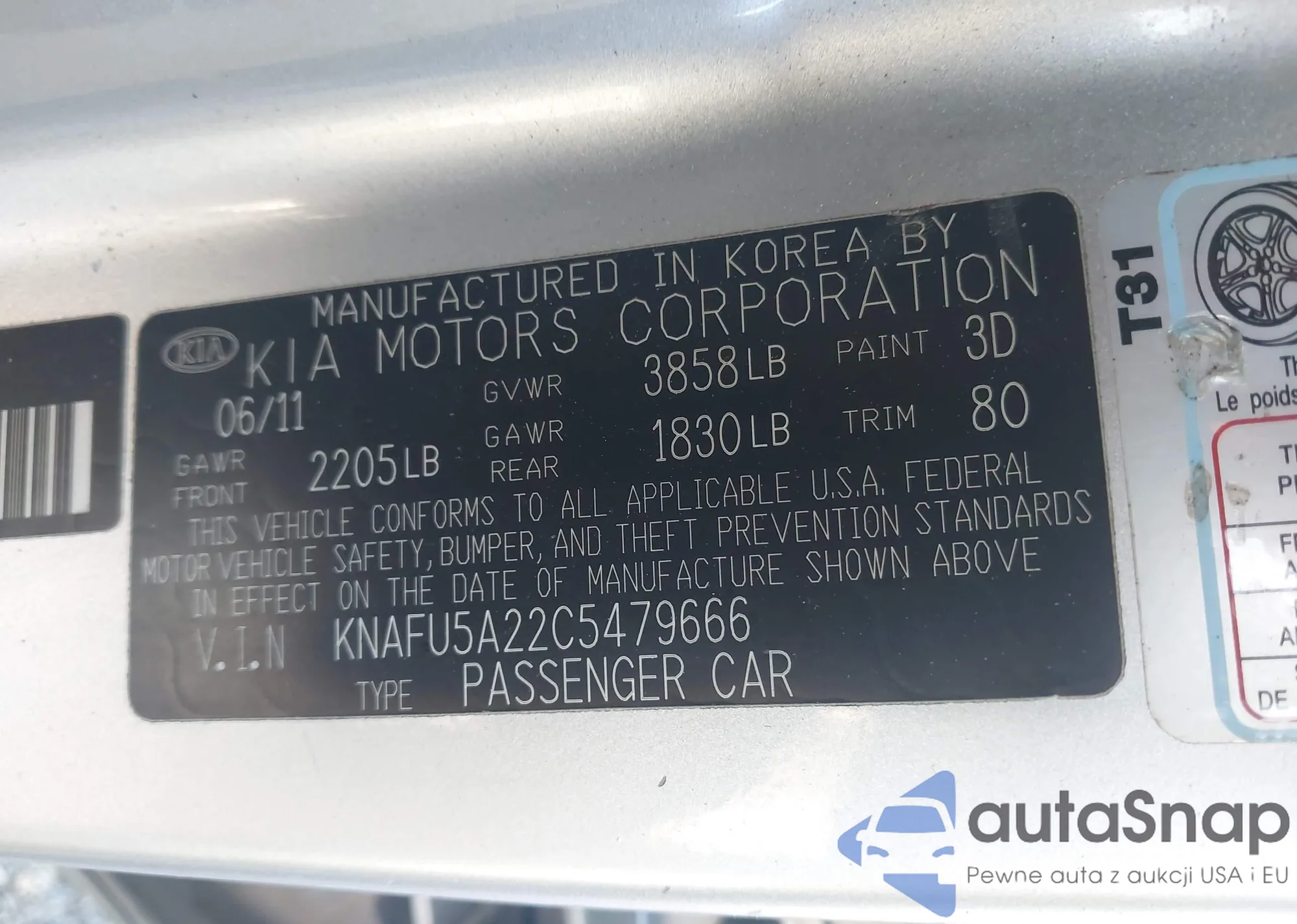 • VIN KNAFU5A22C5479666