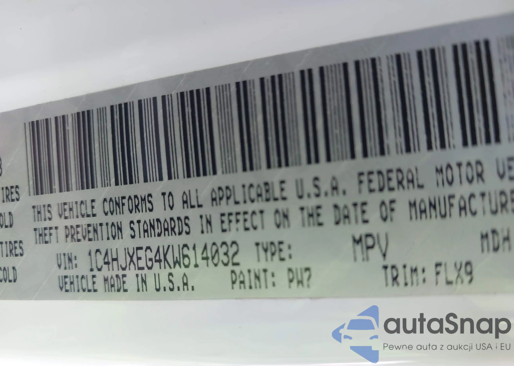 • VIN 1C4PJMLB4KD364210