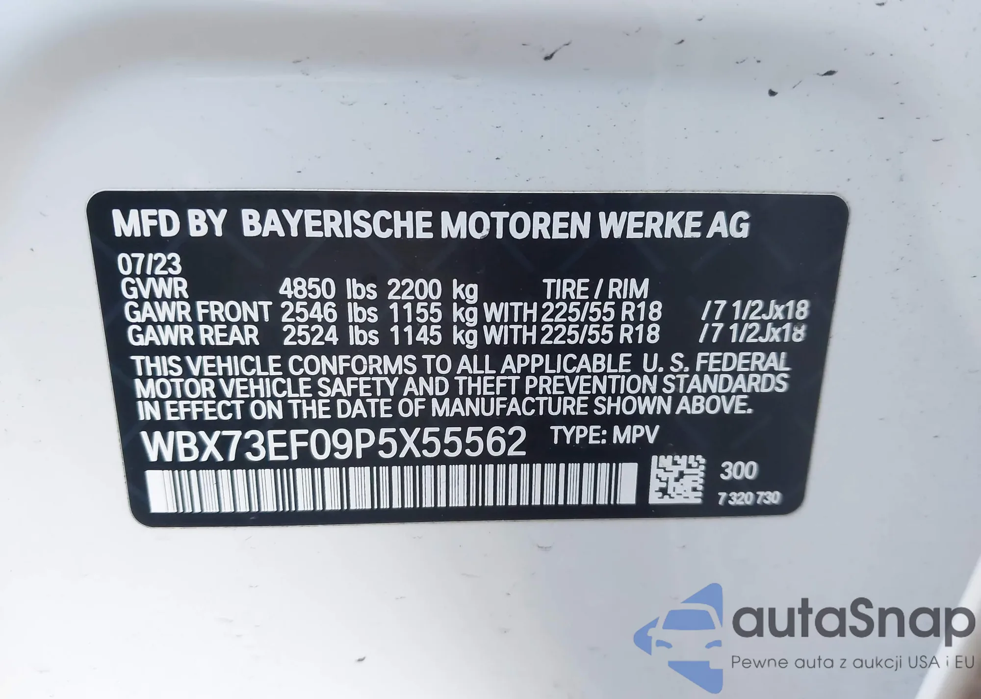 • VIN WBX73EF09P5X55562