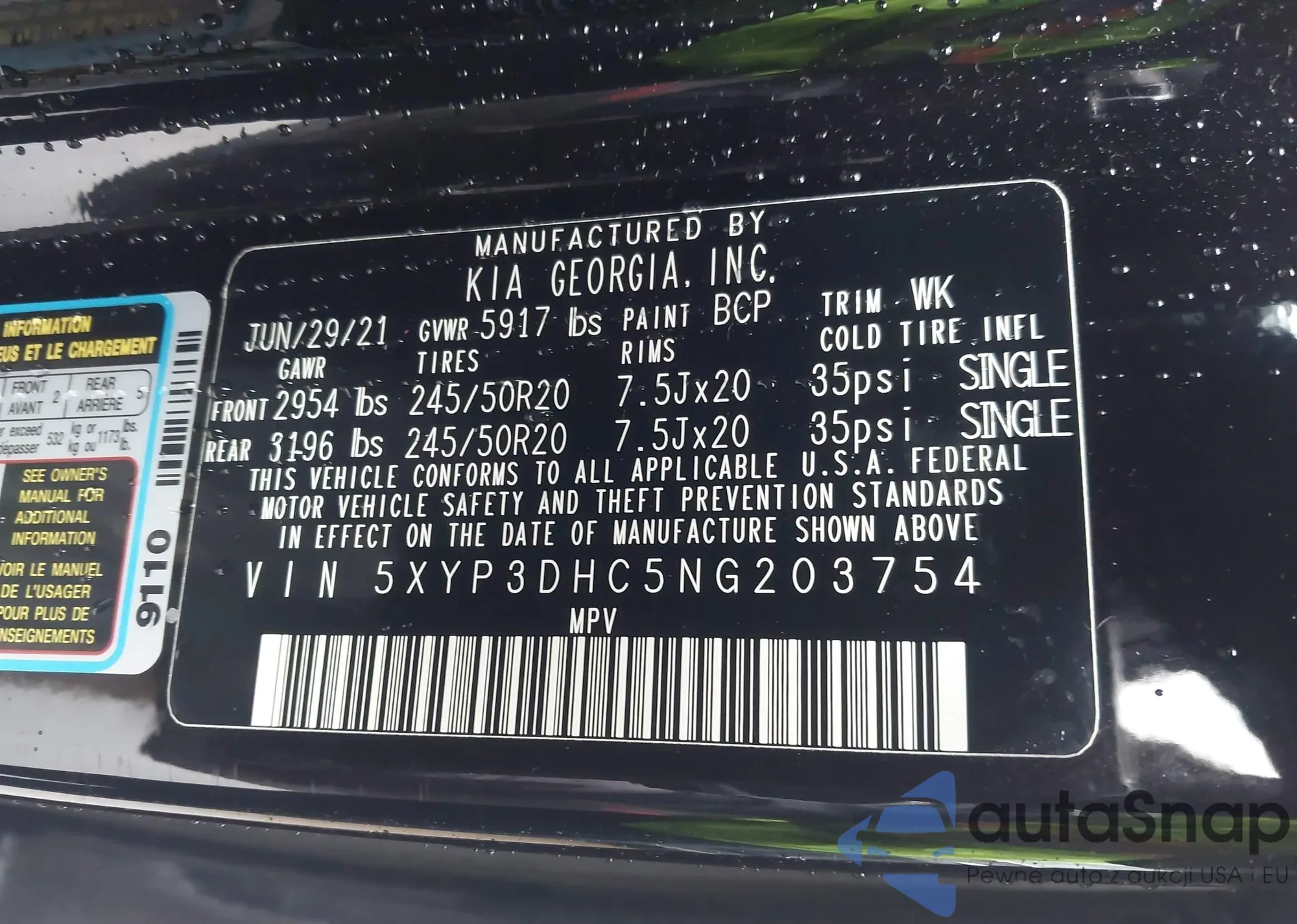 • VIN 5XYP3DHC5NG203754