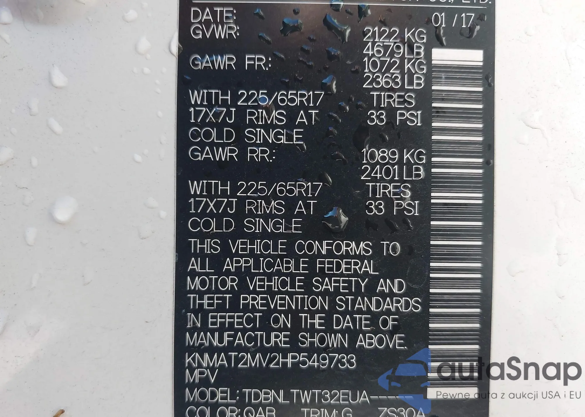 LOT: 42990774 VIN: KNAFW6A37A5146496