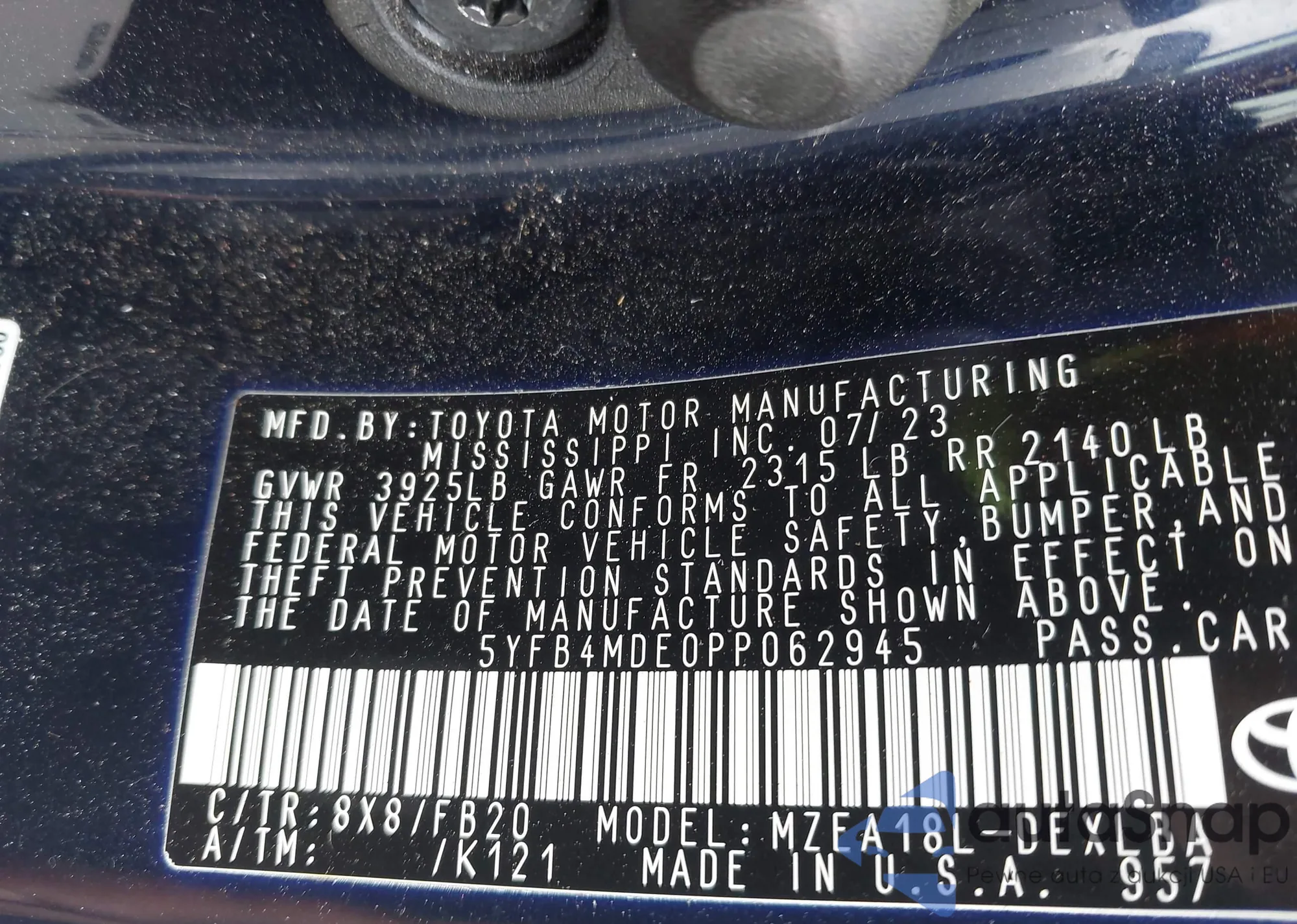 LOT: 42935829 VIN: 5YFB4MDE0PP062945