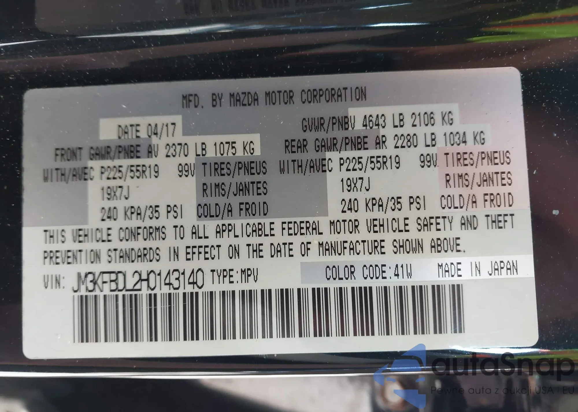 LOT: 42947624 VIN: JM3KFBDL2H0143140
