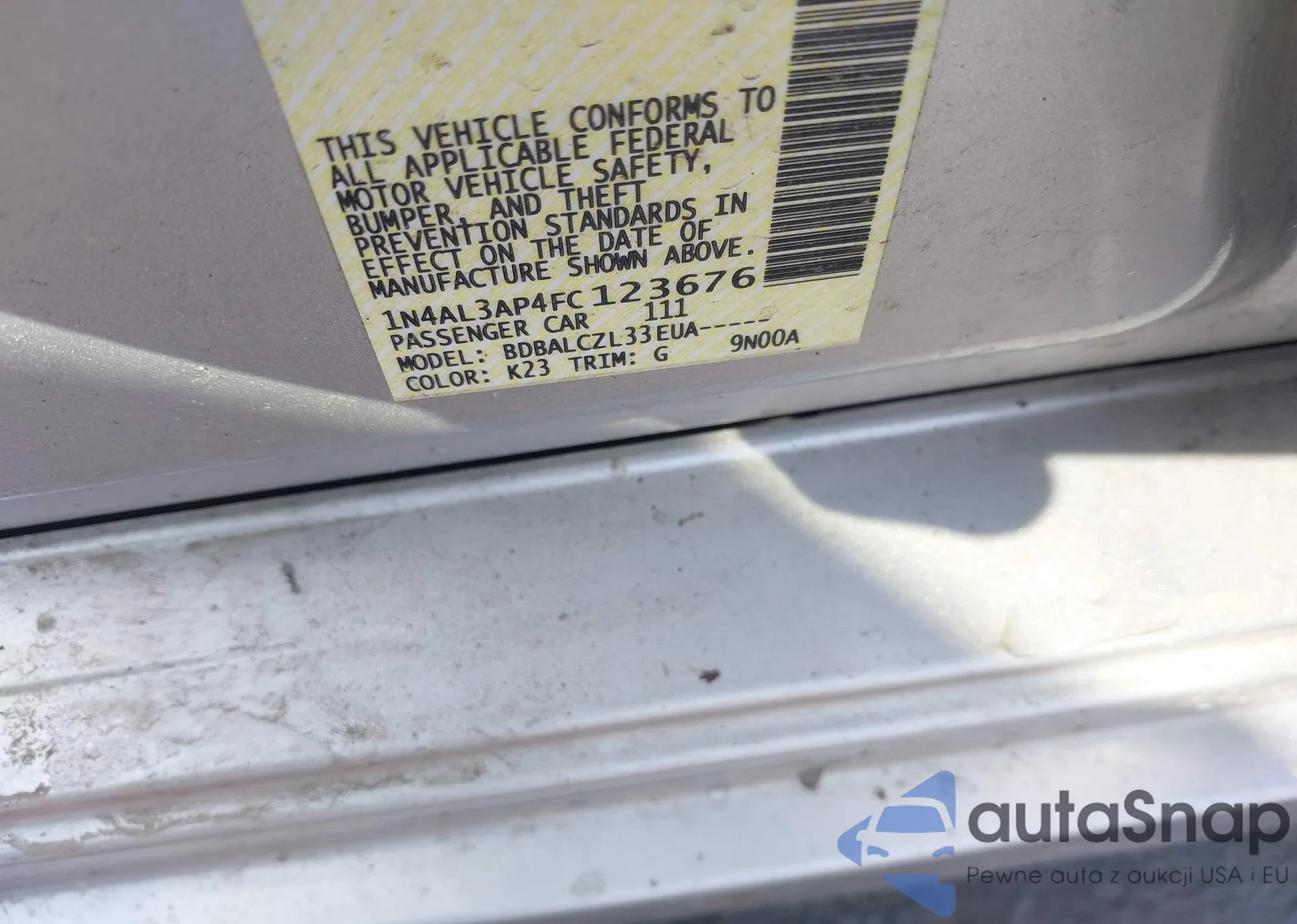 LOT: 42951928 VIN: 1N4AL3AP4FC123676