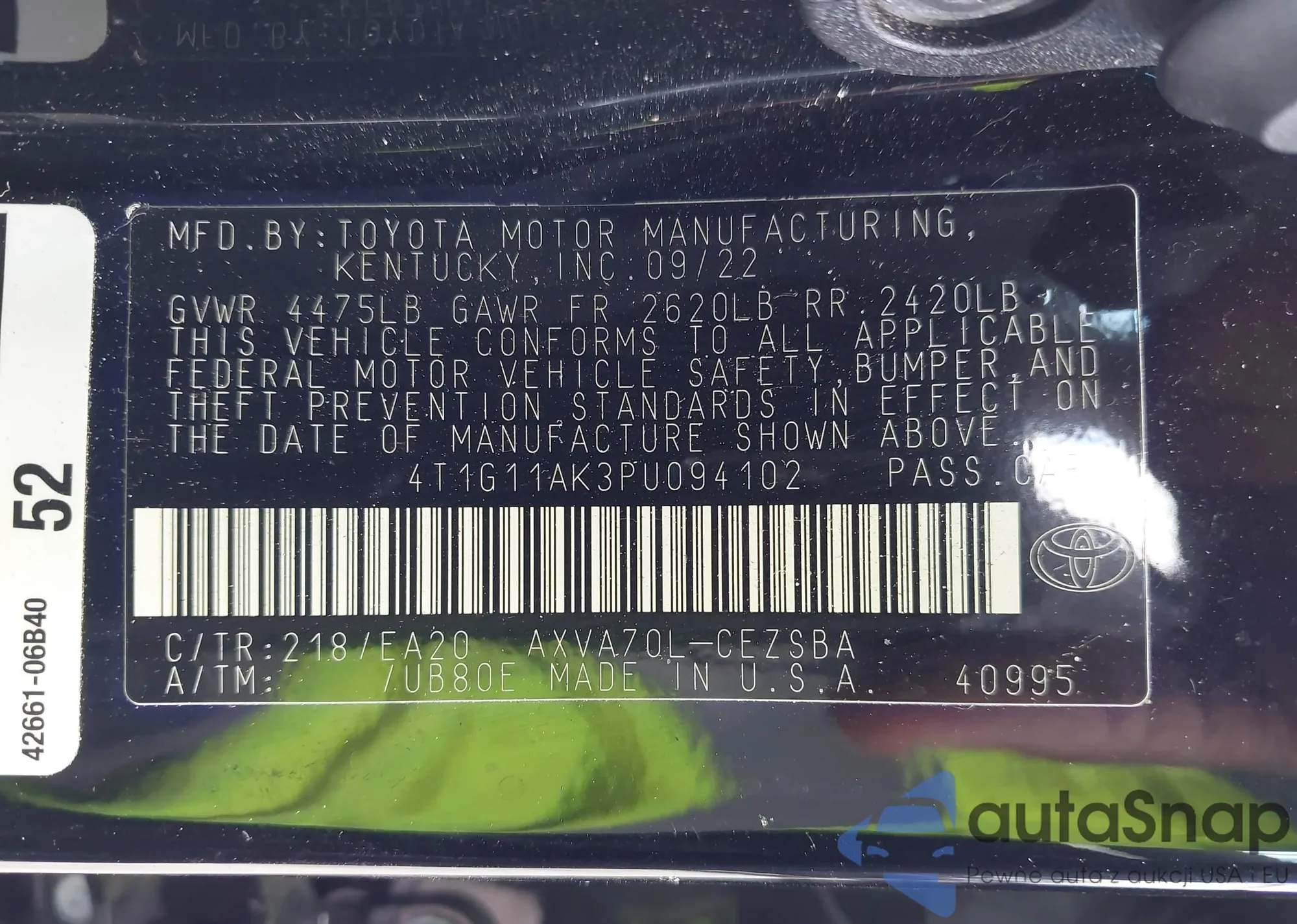 LOT: 42997960 VIN: 4T1G11AK5MU404407