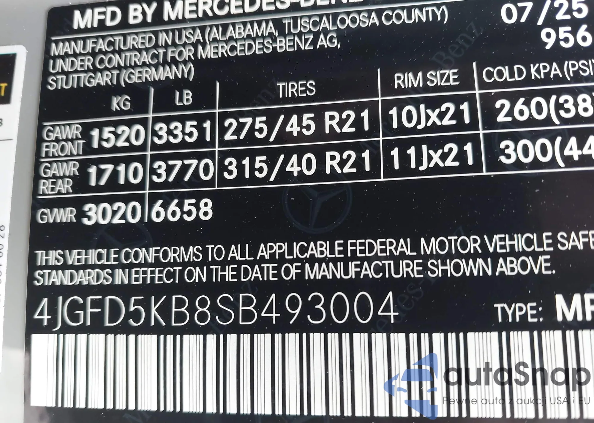 LOT: 42937085 VIN: WA1LGAFEXFD013576