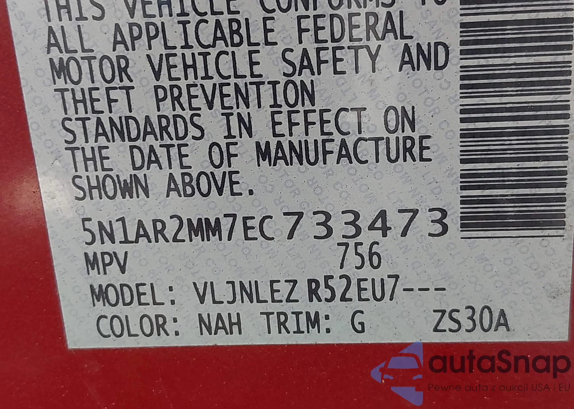 LOT: 42776861 VIN: JN1BJ1CR7JW256501