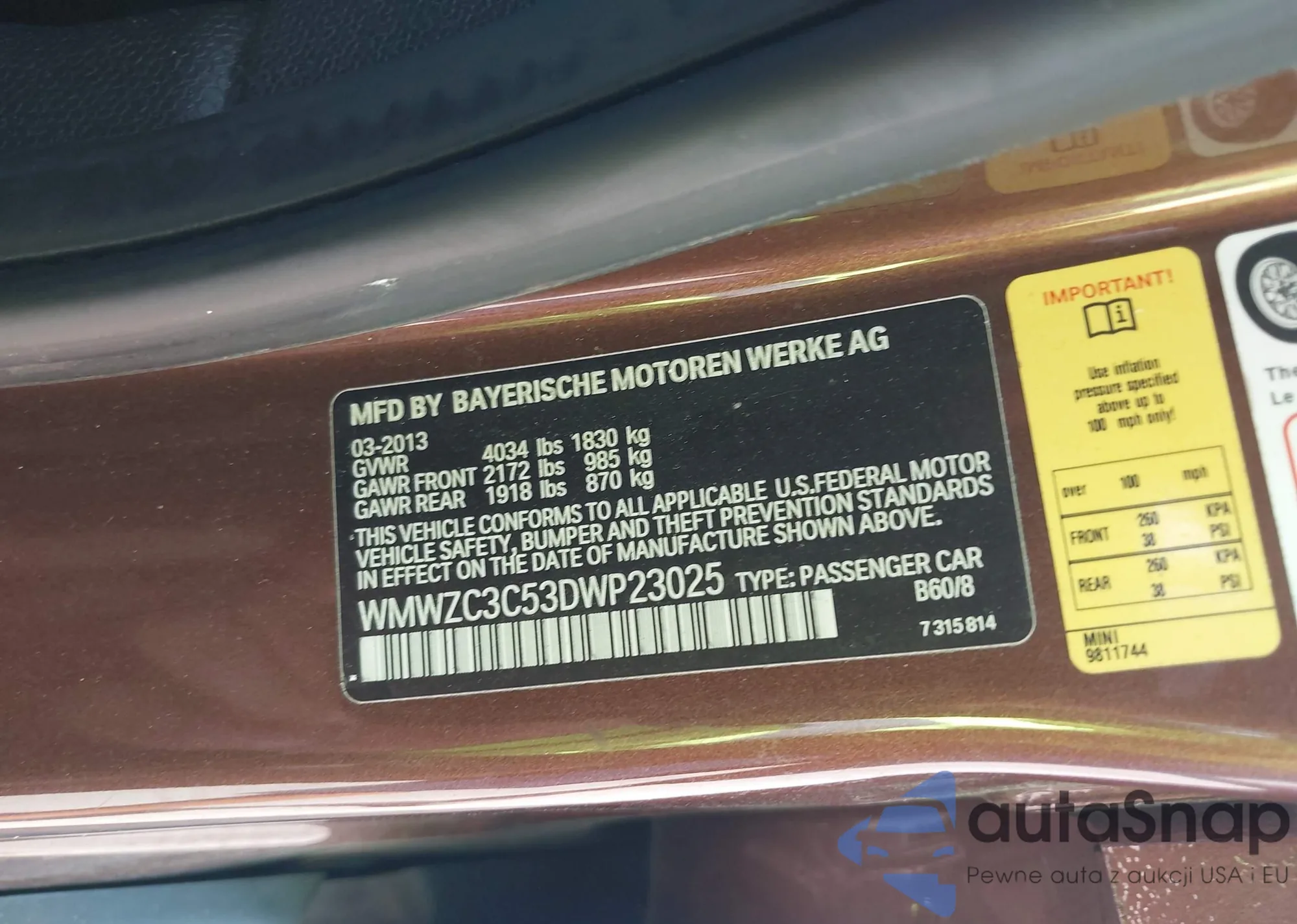 • VIN WMWZC3C53DWP23025