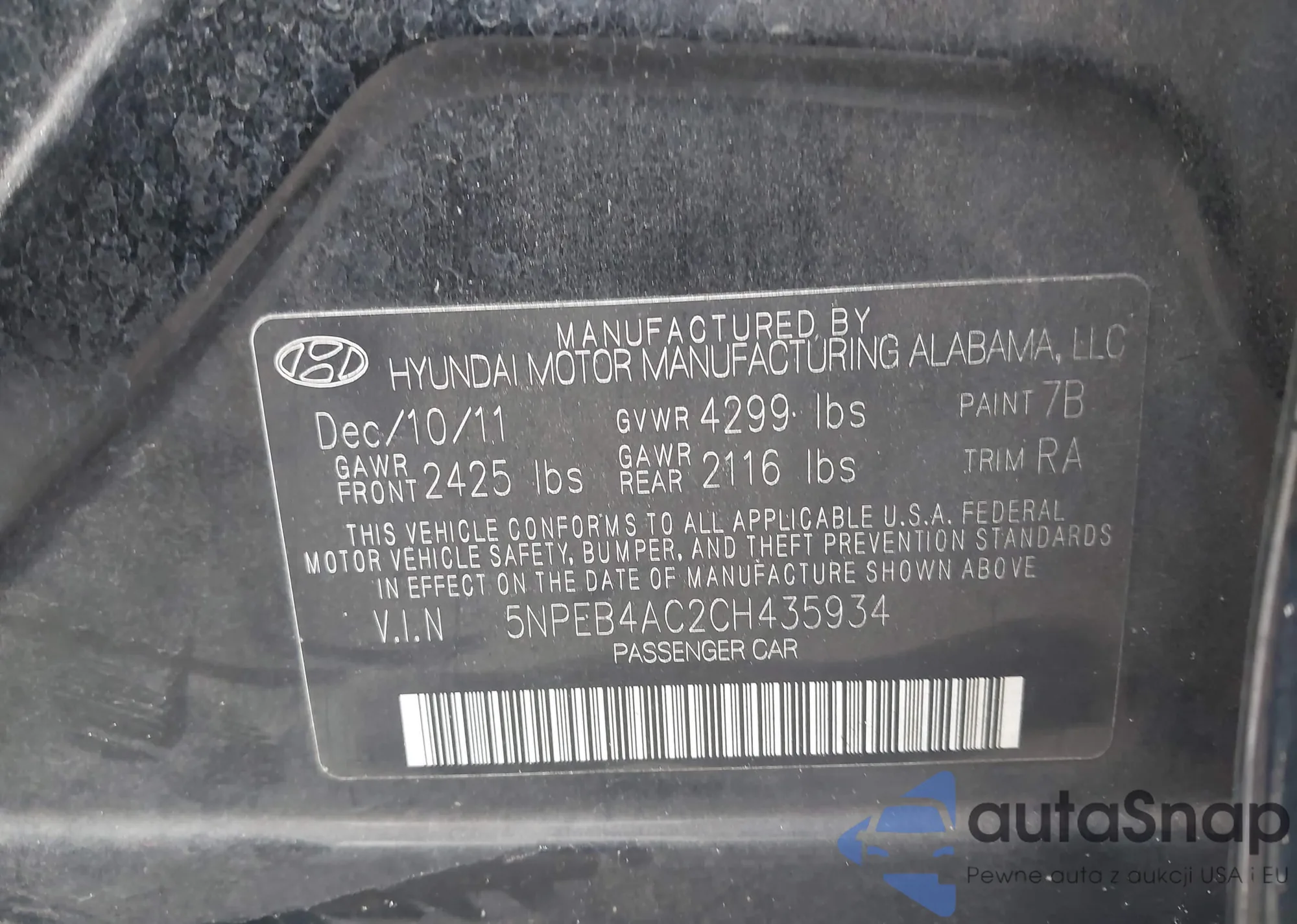 • VIN 19UUA9F57CA011650
