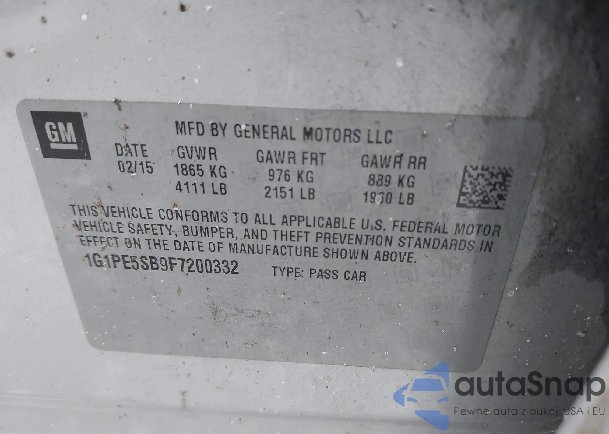 • VIN 1G1PE5SB9F7200332