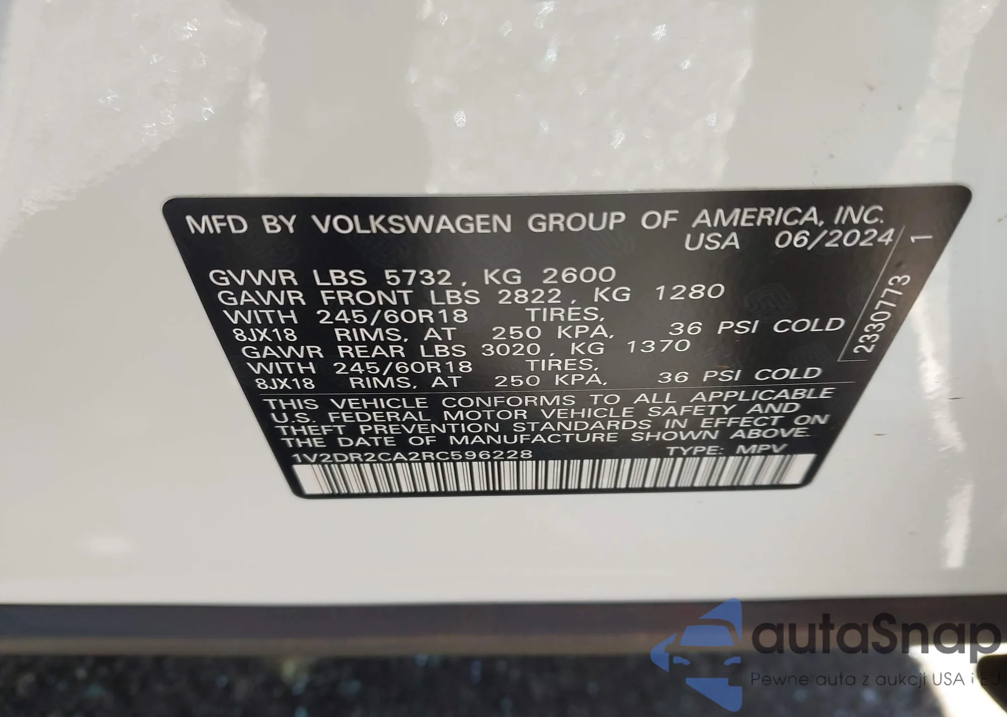 • VIN 1V2DR2CA2RC596228