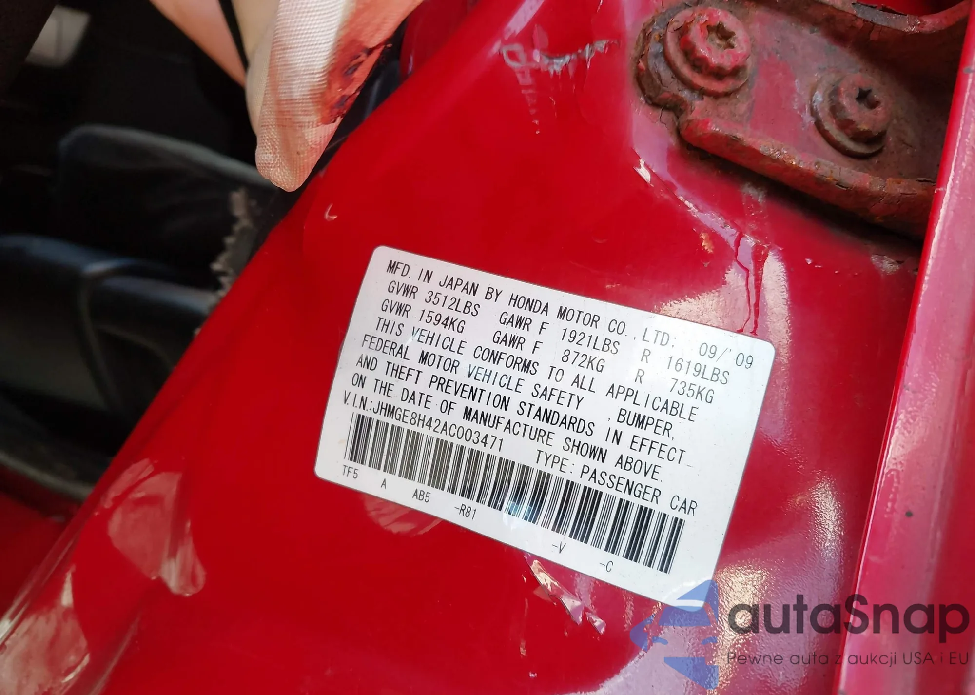 LOT: 43509700 VIN: JHMGE8H42AC003471