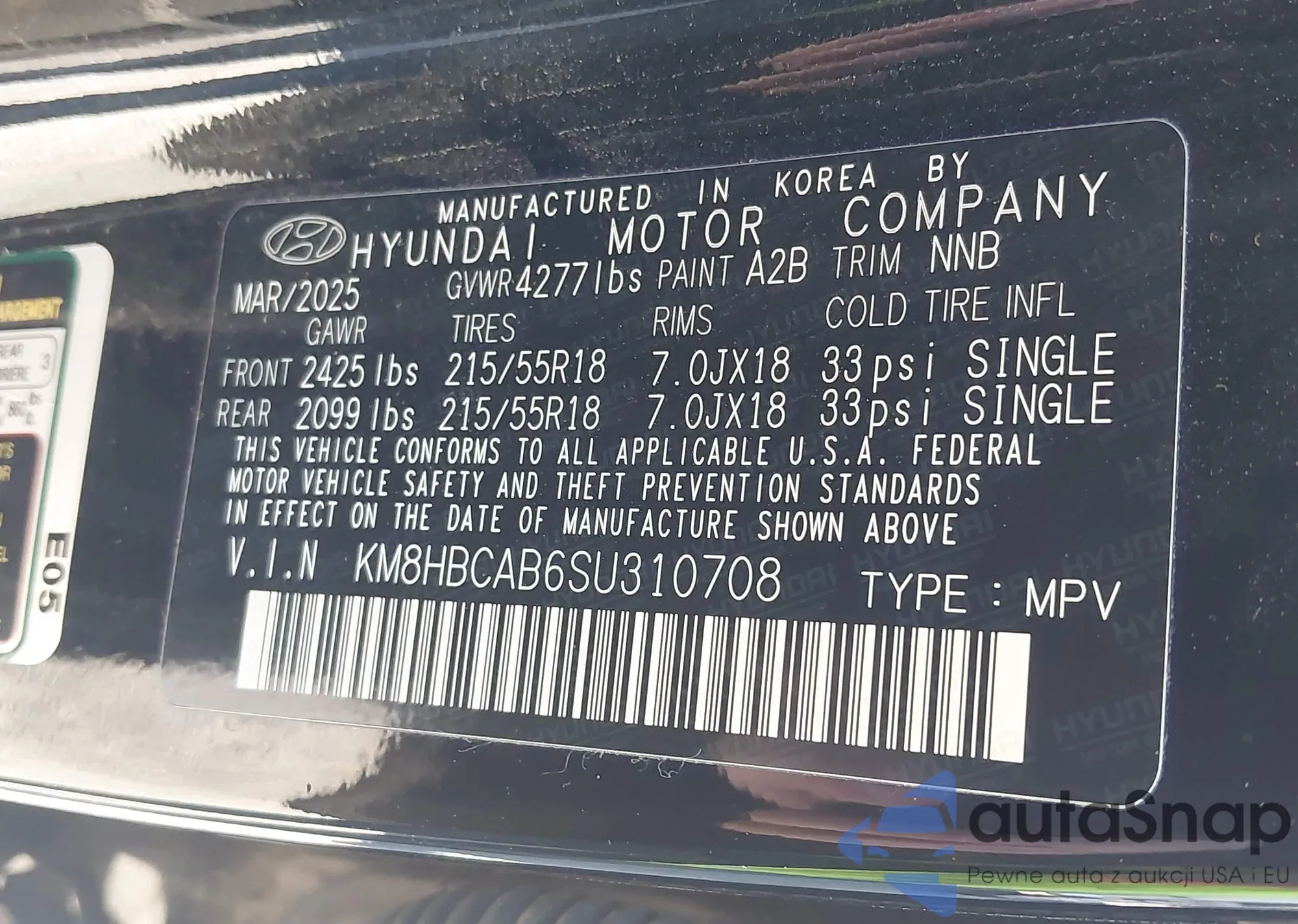 LOT: 43522654 VIN: KM8K33AG4PU191501
