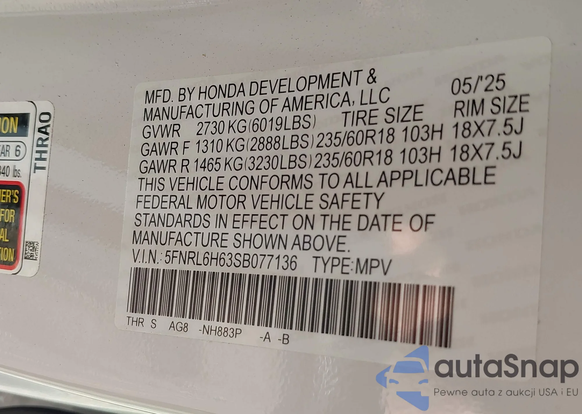 • VIN 5FNRL5H40CB038952