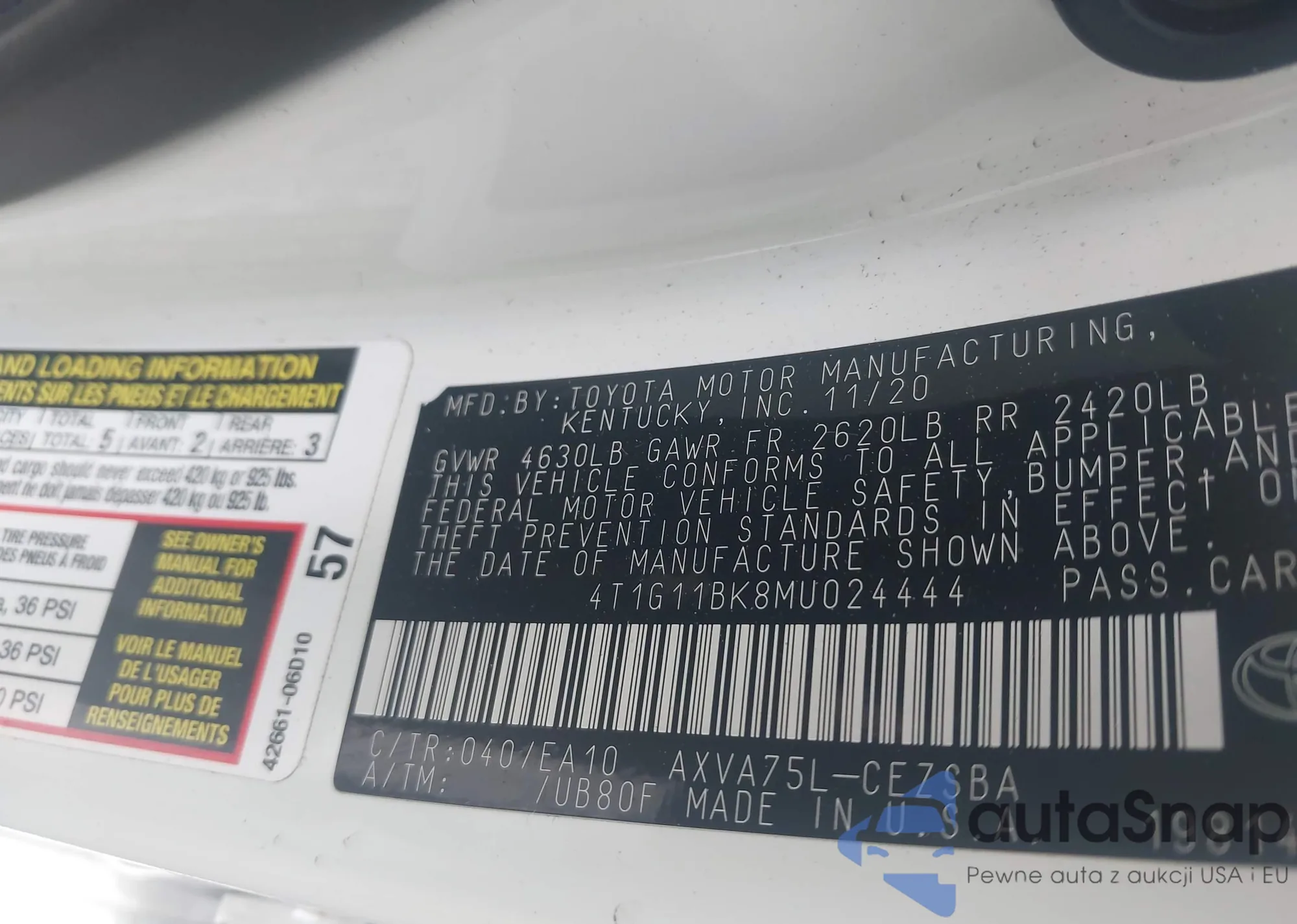 LOT: 43392176 VIN: 4T1G11BK8MU024444
