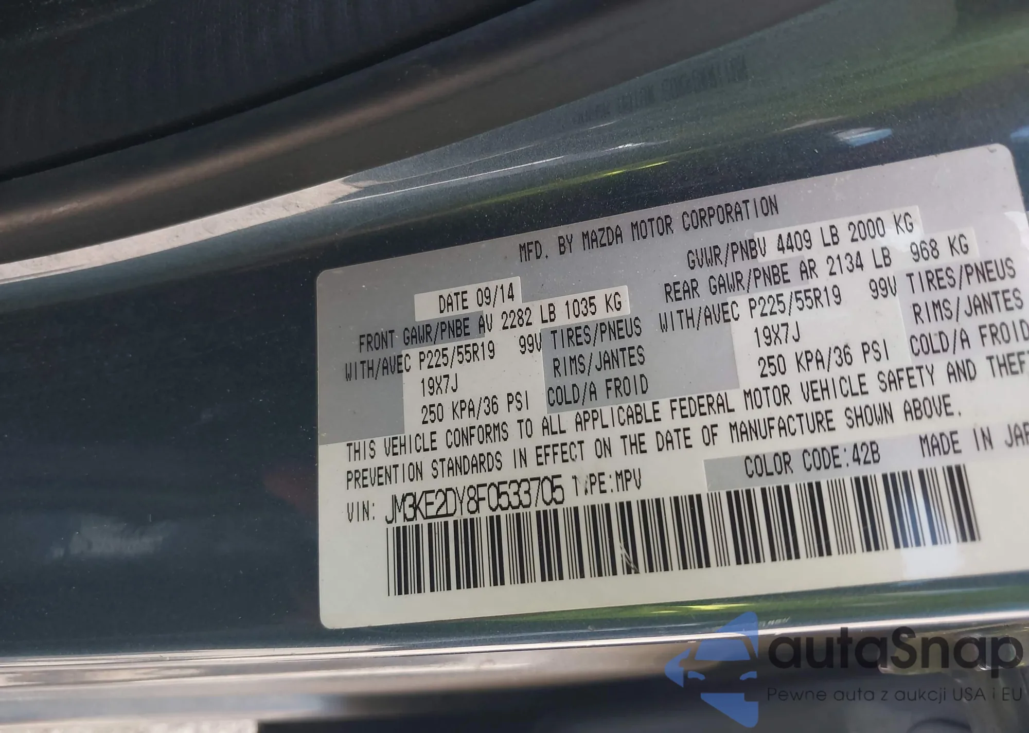 LOT: 43424869 VIN: JM3KE2DY8F0533705