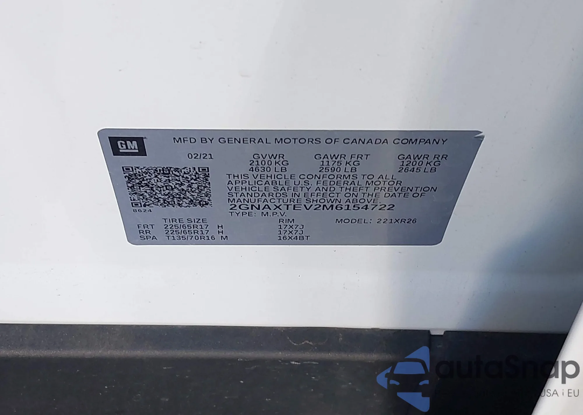 • VIN 2GNAXTEV2M6154722