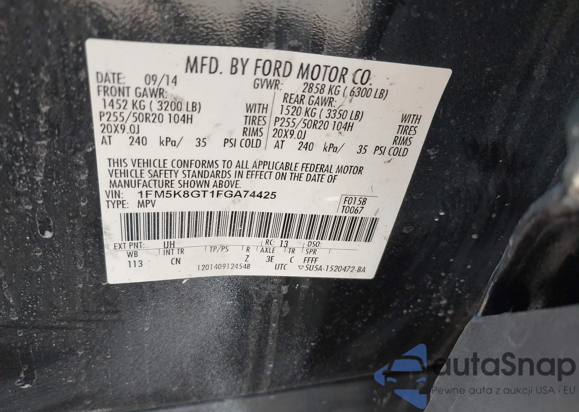 LOT: 43146297 VIN: 1FM5K8GT1FGA74425