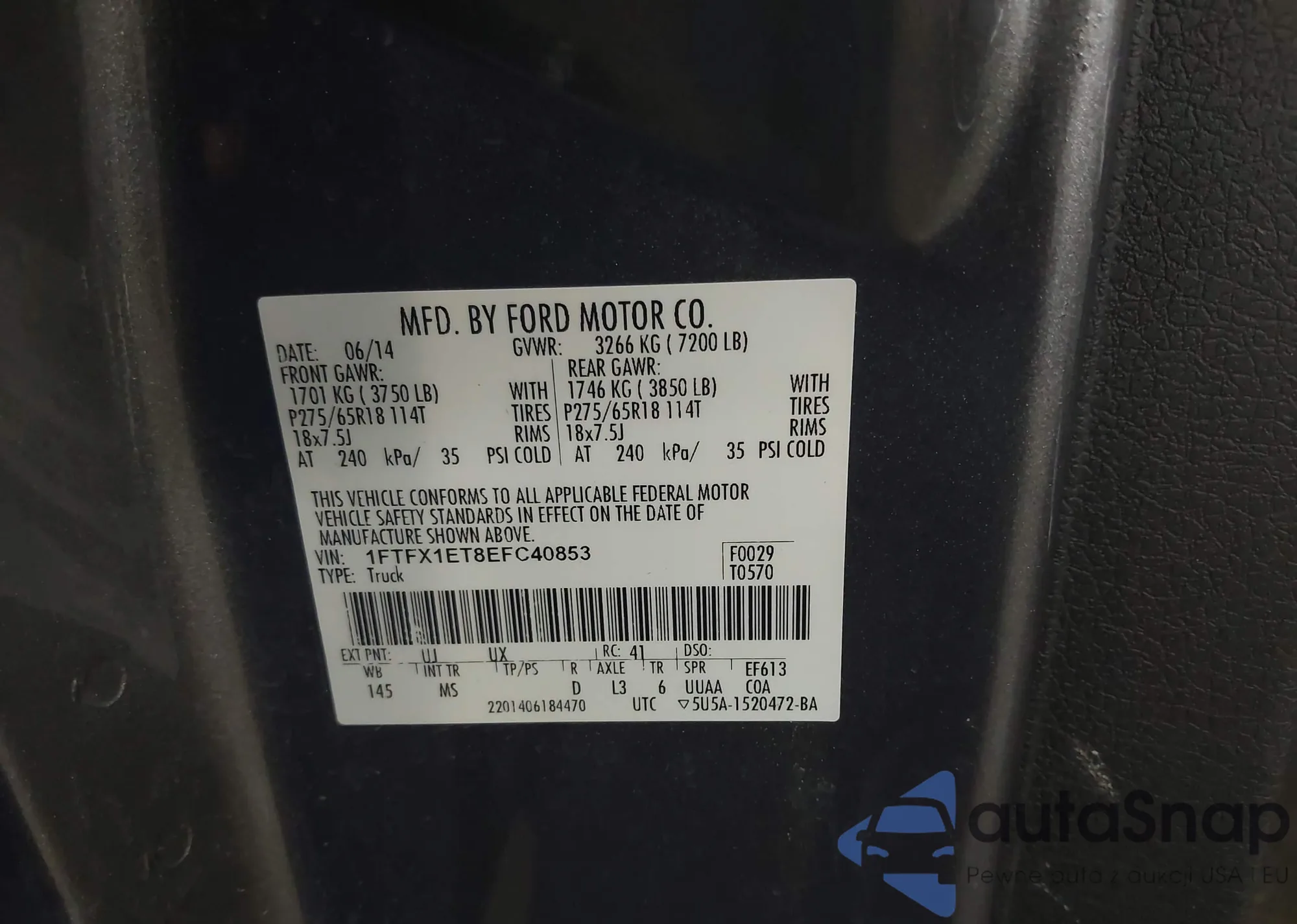 • VIN 1FTFX1ET8EFC40853