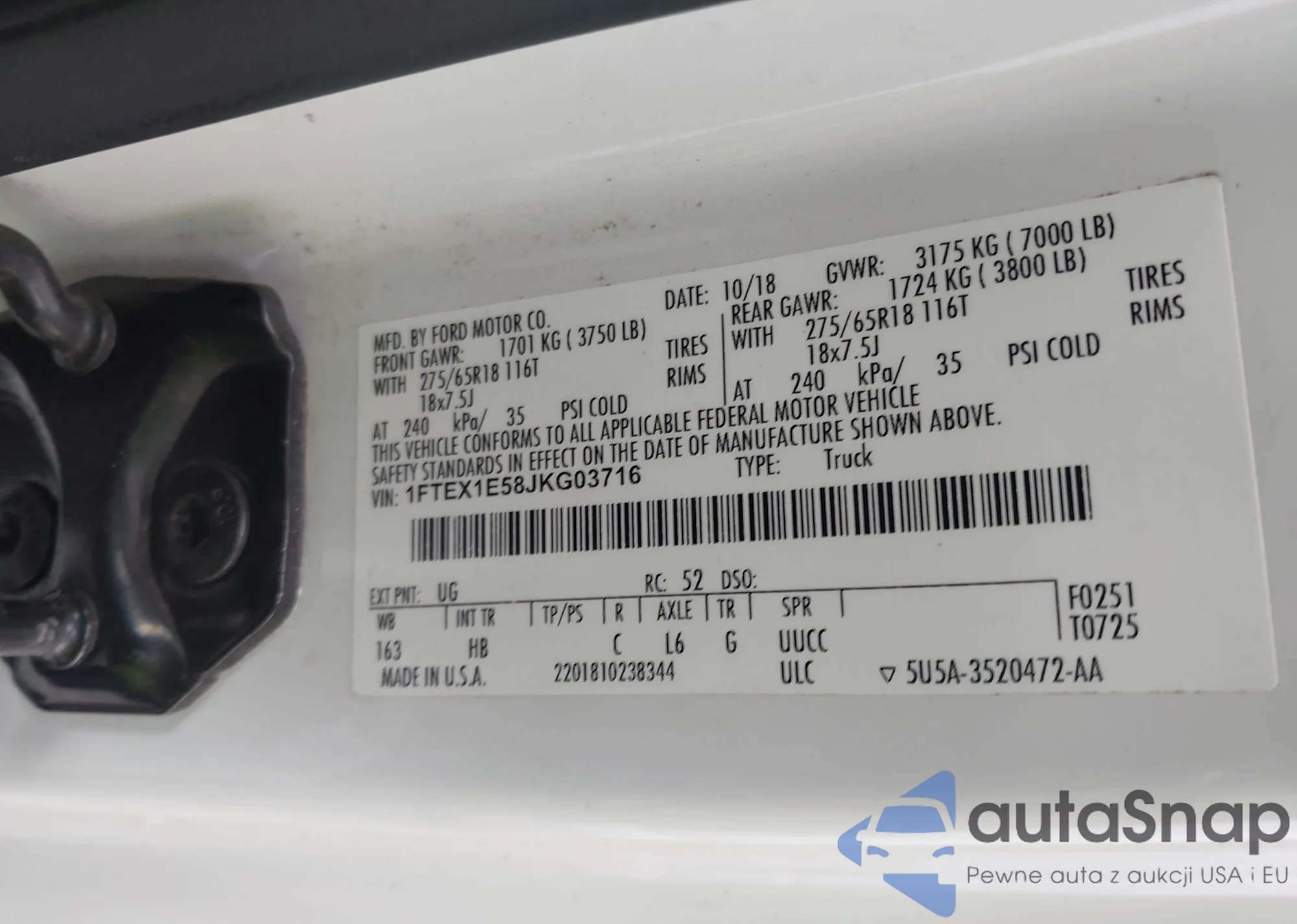LOT: 43369466 VIN: 1FTEX1E58JKG03716
