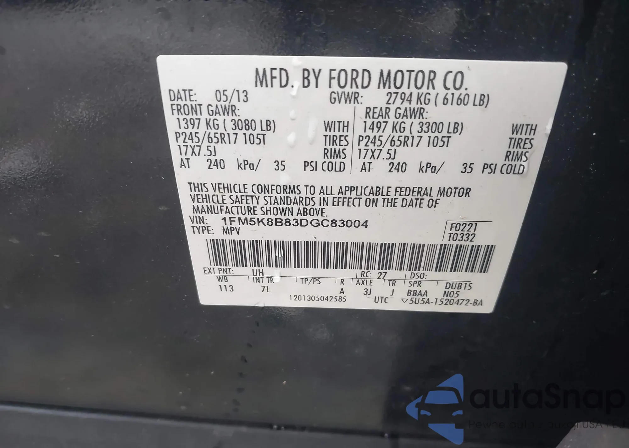 • VIN 1FM5K8B83DGC83004