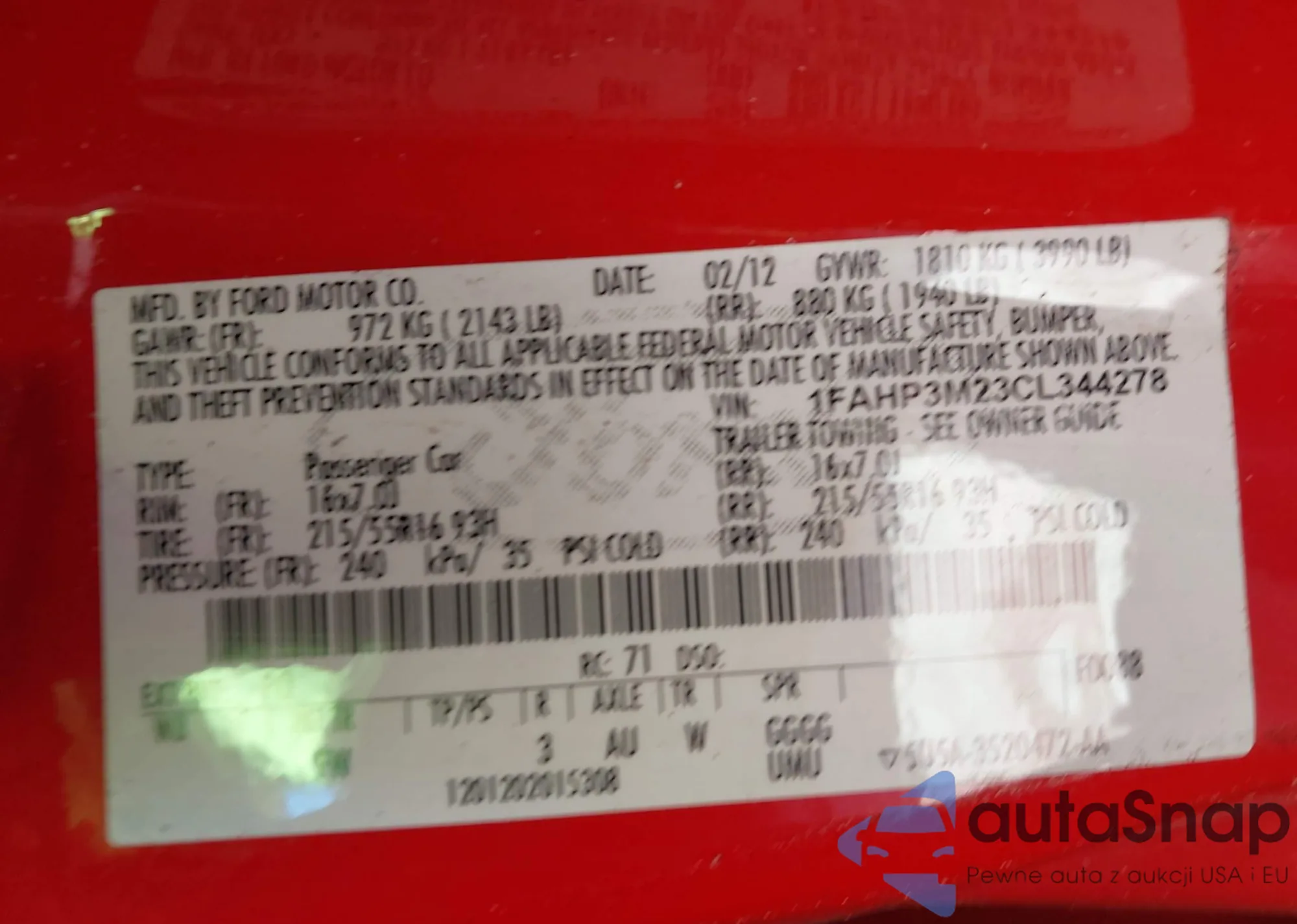• VIN 1FAHP3M23CL344278