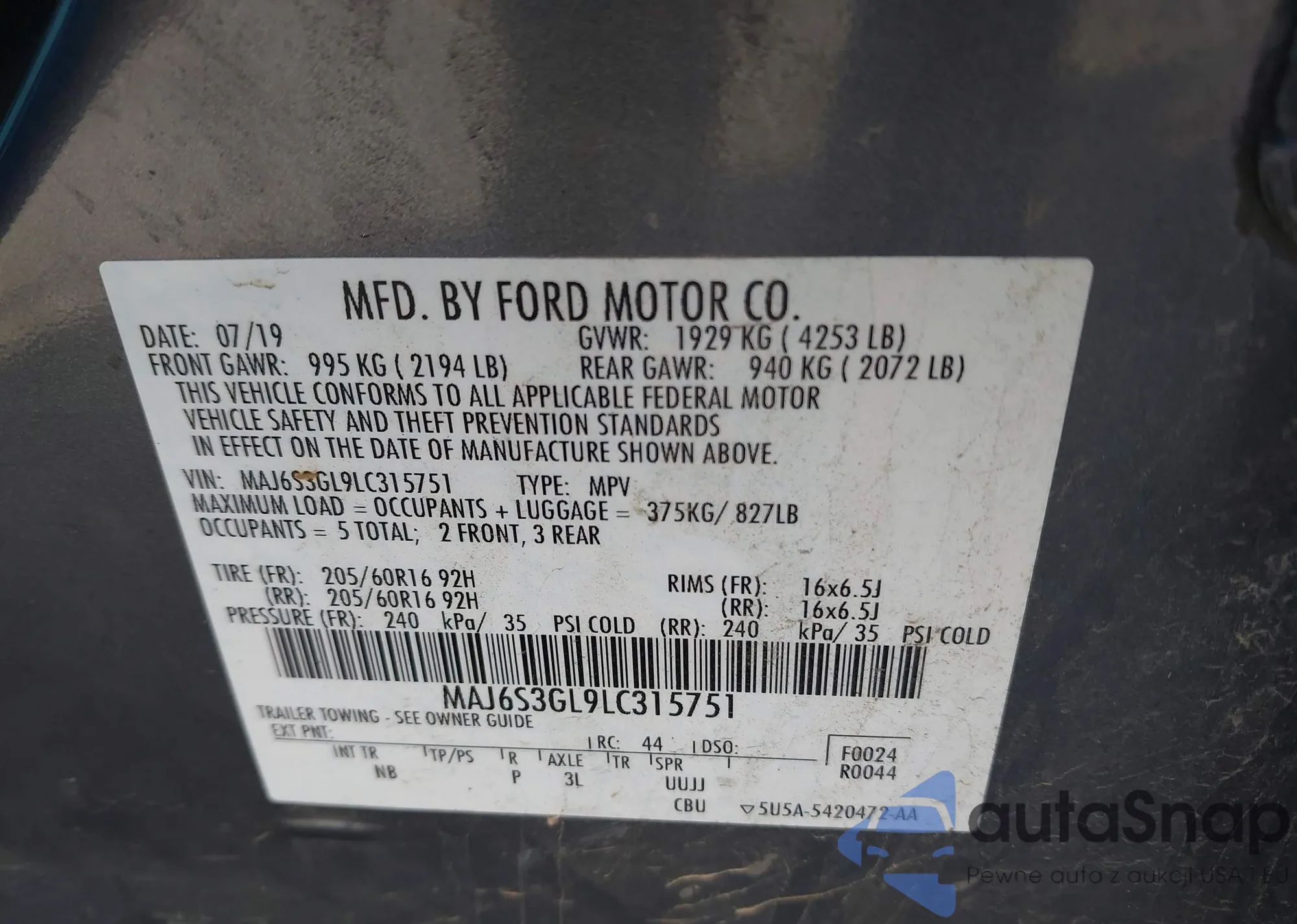 • VIN 2FMPK4J91LBA14534
