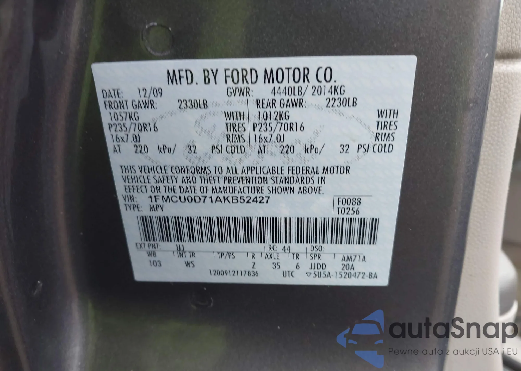 LOT: 43501533 VIN: 1FMCU0D71AKB52427