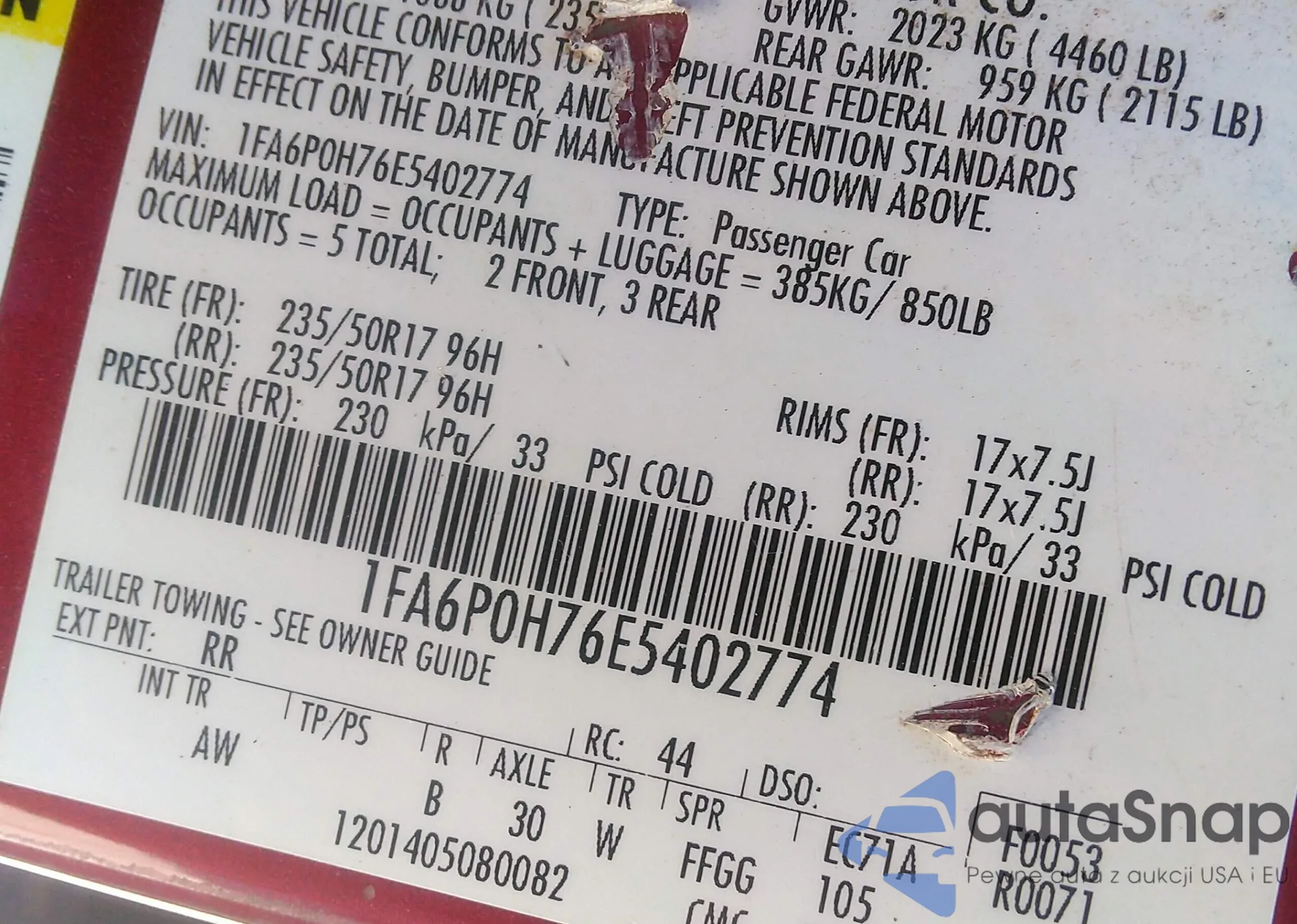 • VIN 2FMHK6DT2EBD08941