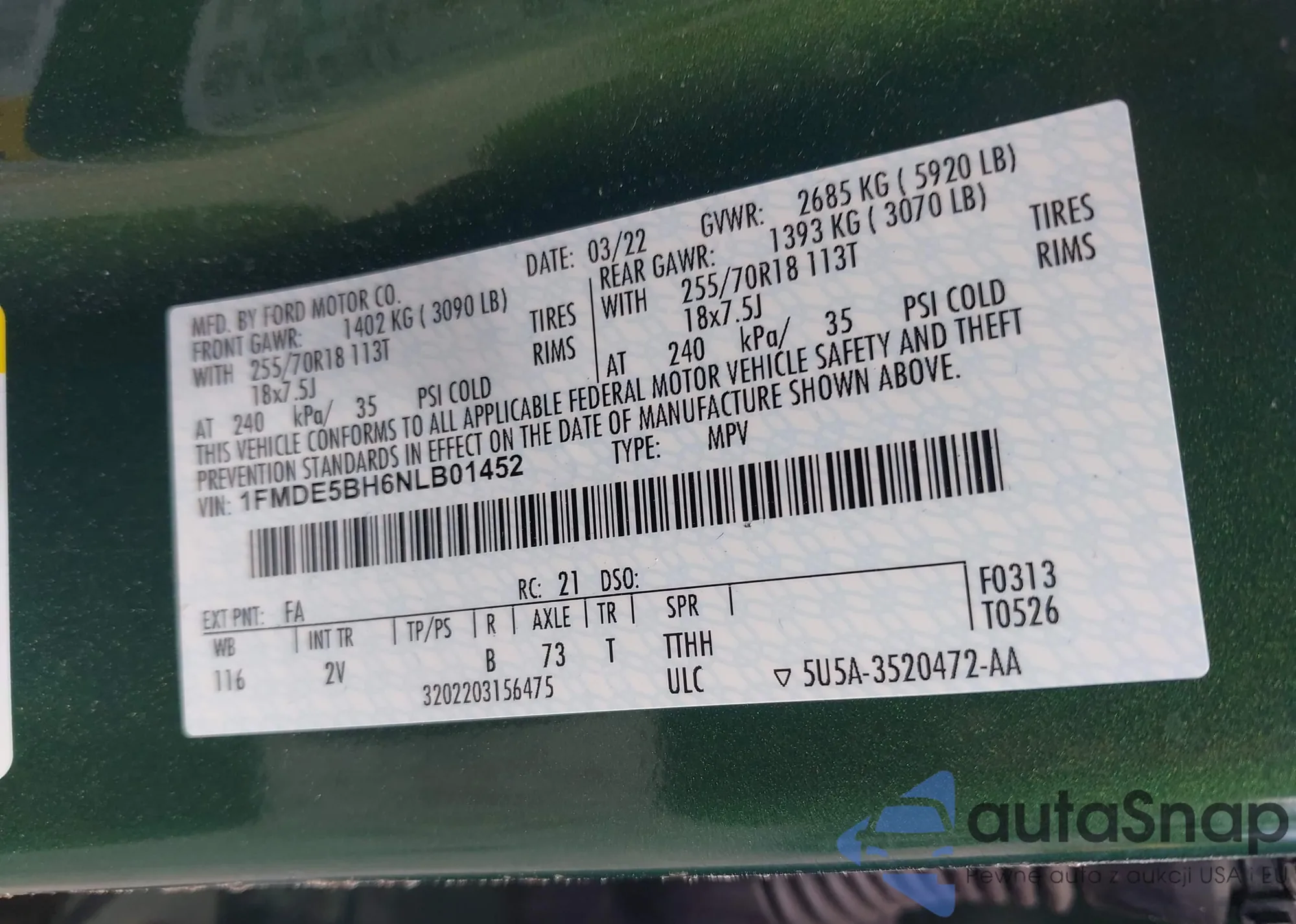 LOT: 43242363 VIN: 1FMSK7DHXLGA38550