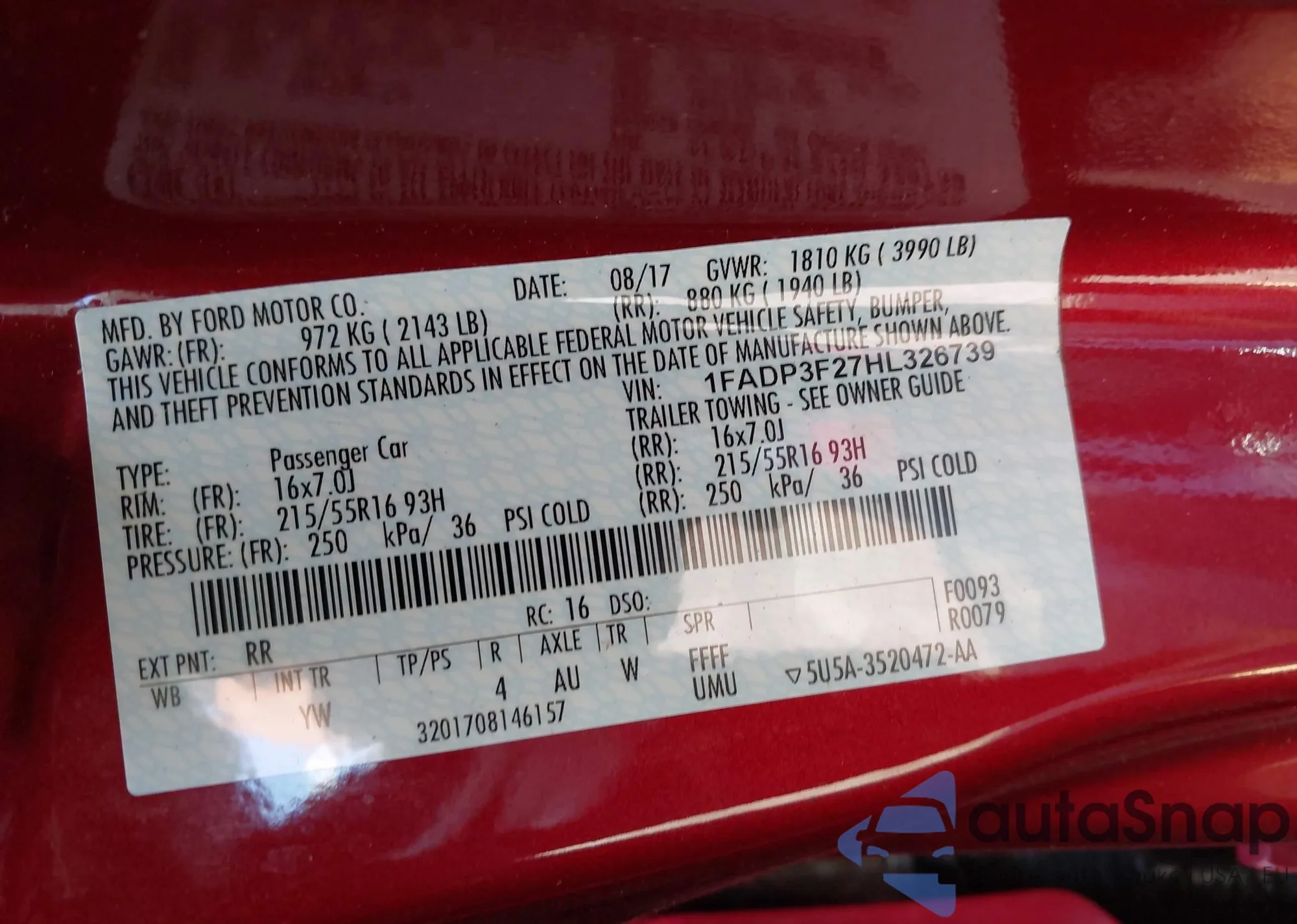 • VIN 3FA6P0HD4HR173907