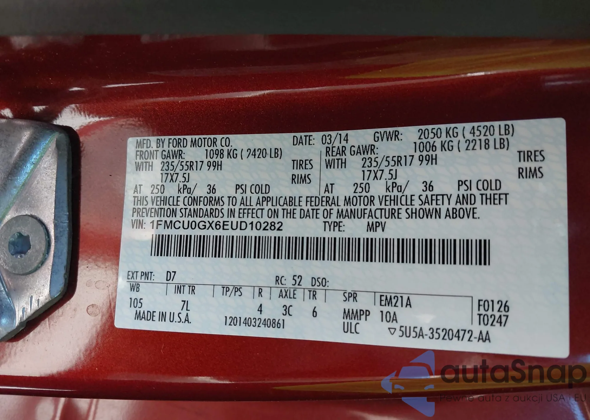 LOT: 43354487 VIN: 1FMCU0GX6EUD10282