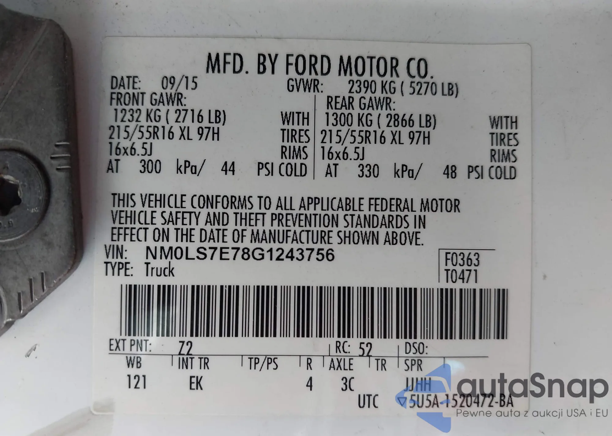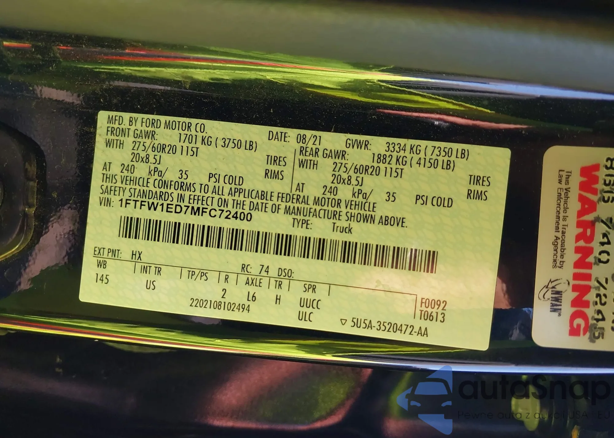 • VIN 1FTFW1ED7MFC72400