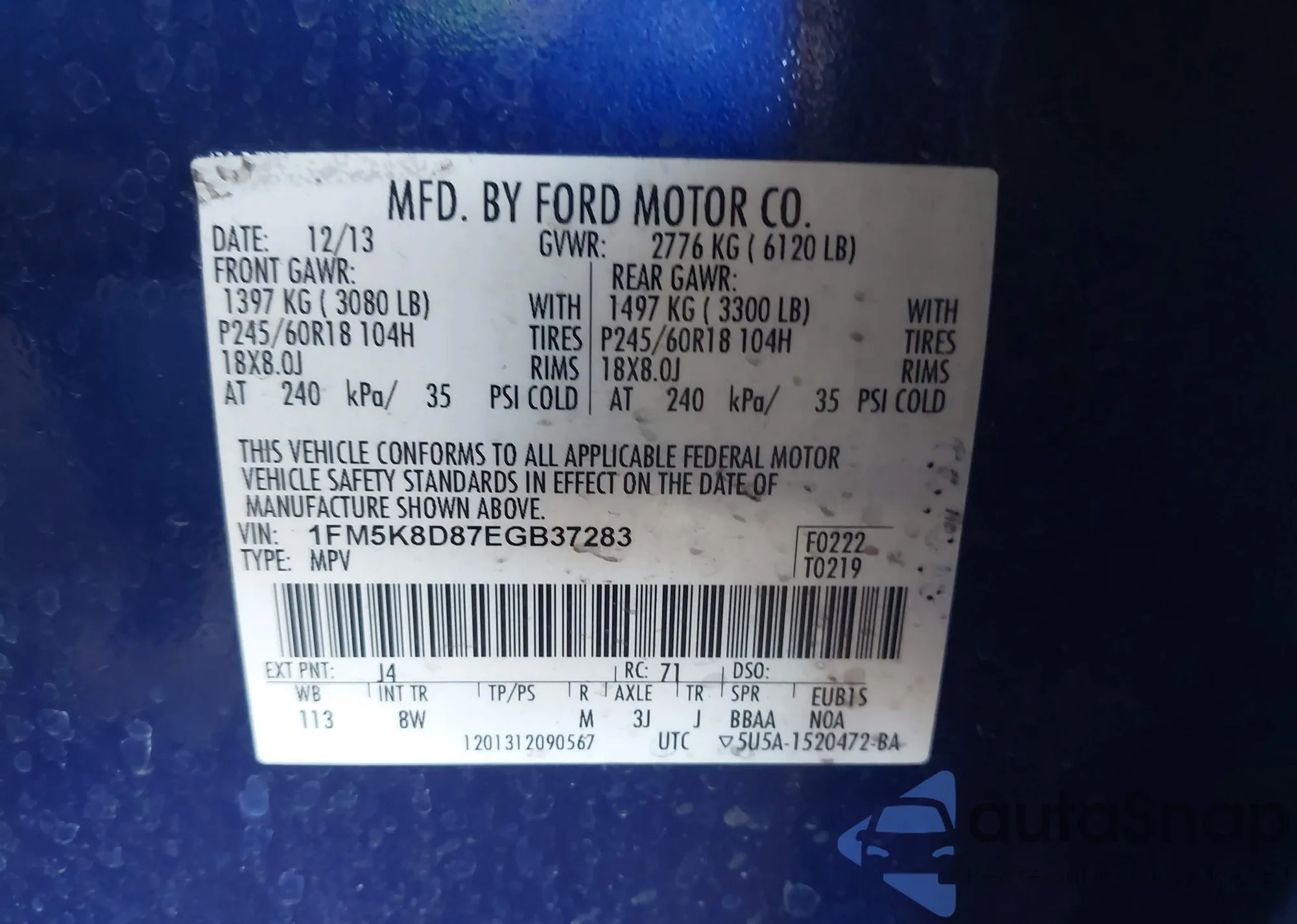 • VIN 1FM5K8D87EGB37283