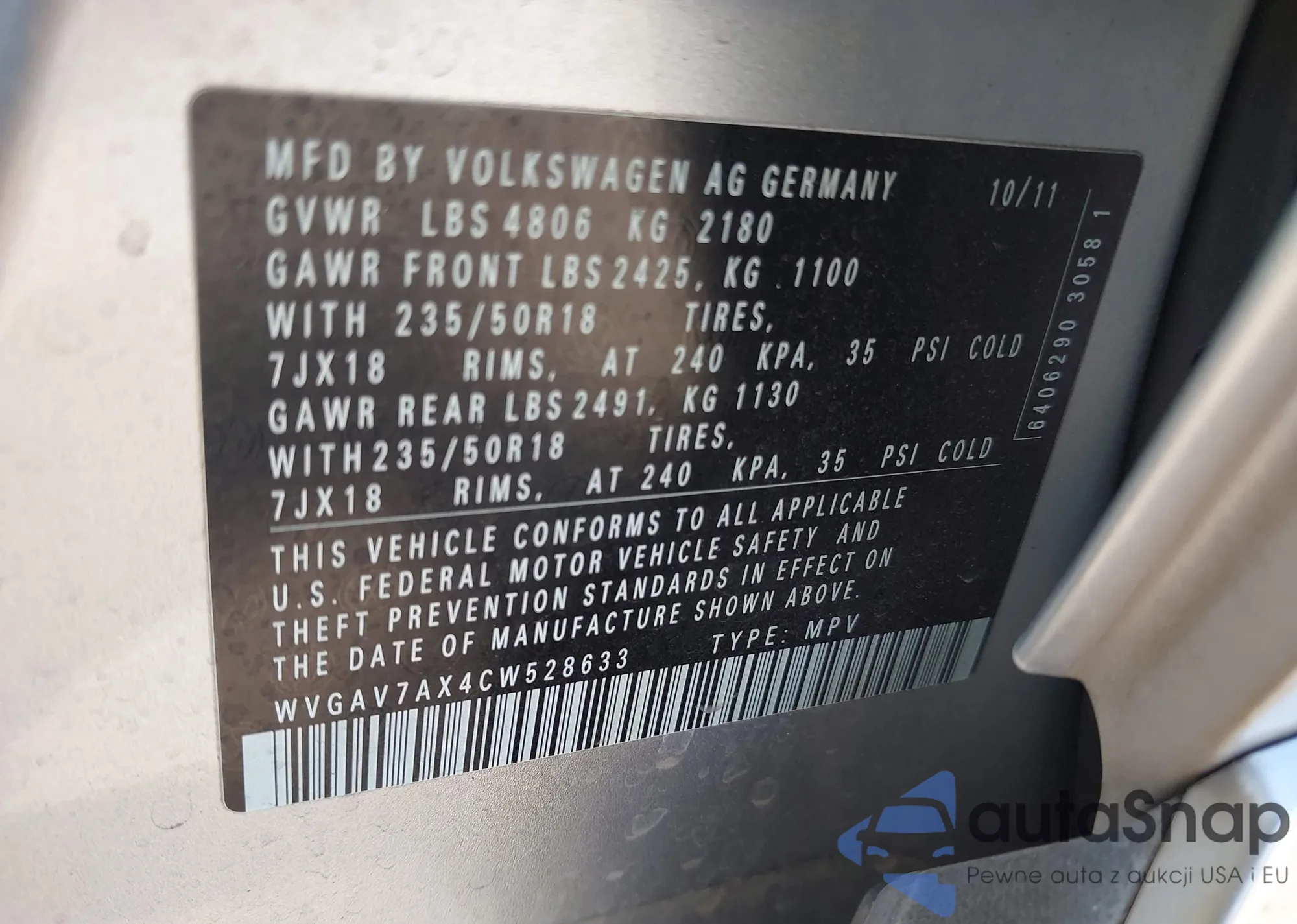 • VIN 3VW2T7BU8NM014240
