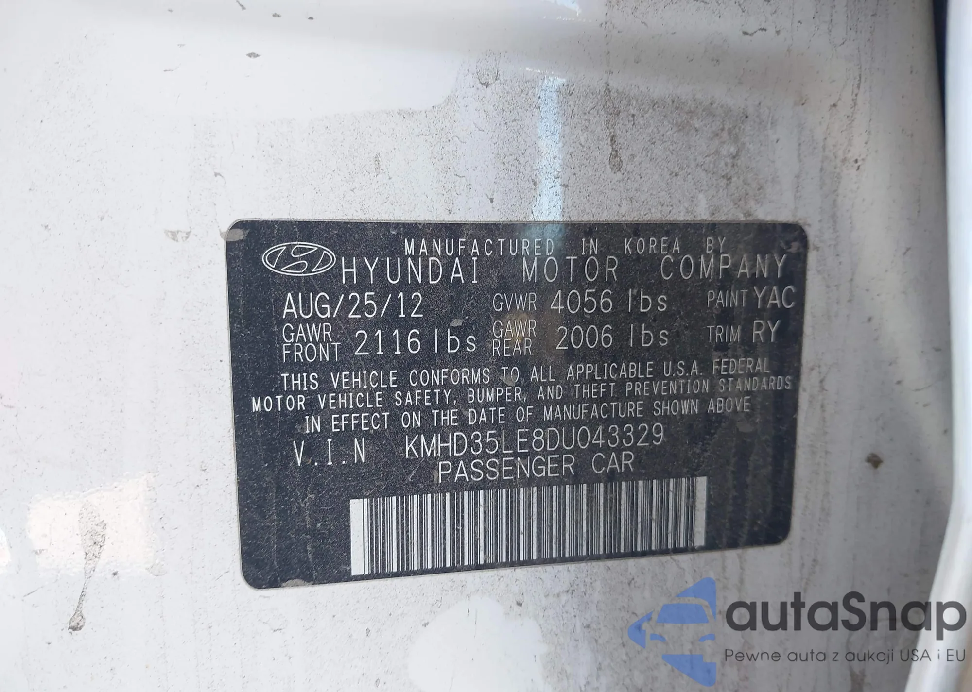 • VIN KMHD35LE8DU043329