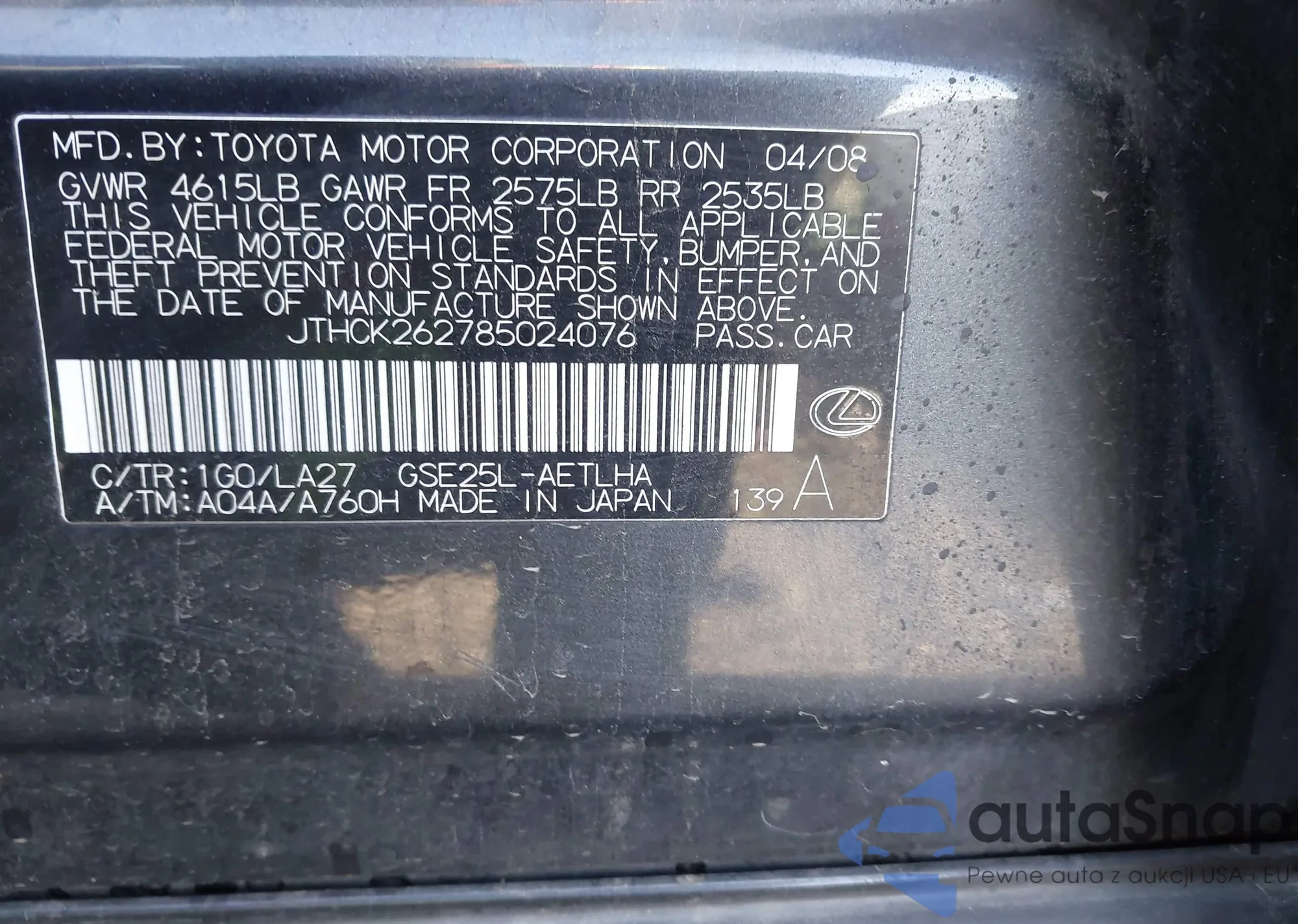 LOT: 43552450 VIN: 3GSCL33P98S585510