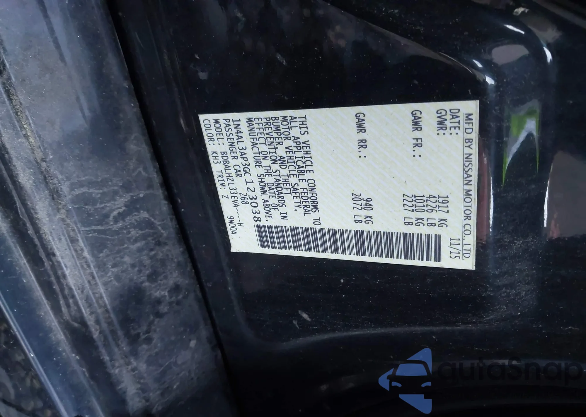 LOT: 43540919 VIN: 1N4AL3AP3GC123038