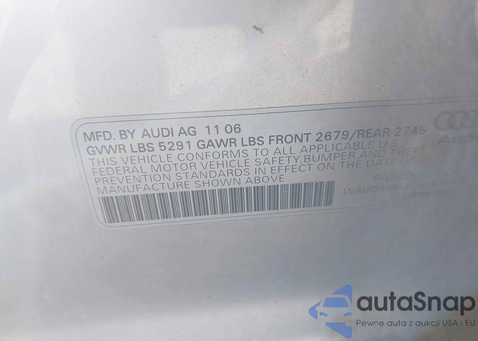 LOT: 43552799 VIN: WAUDH74F87N083754