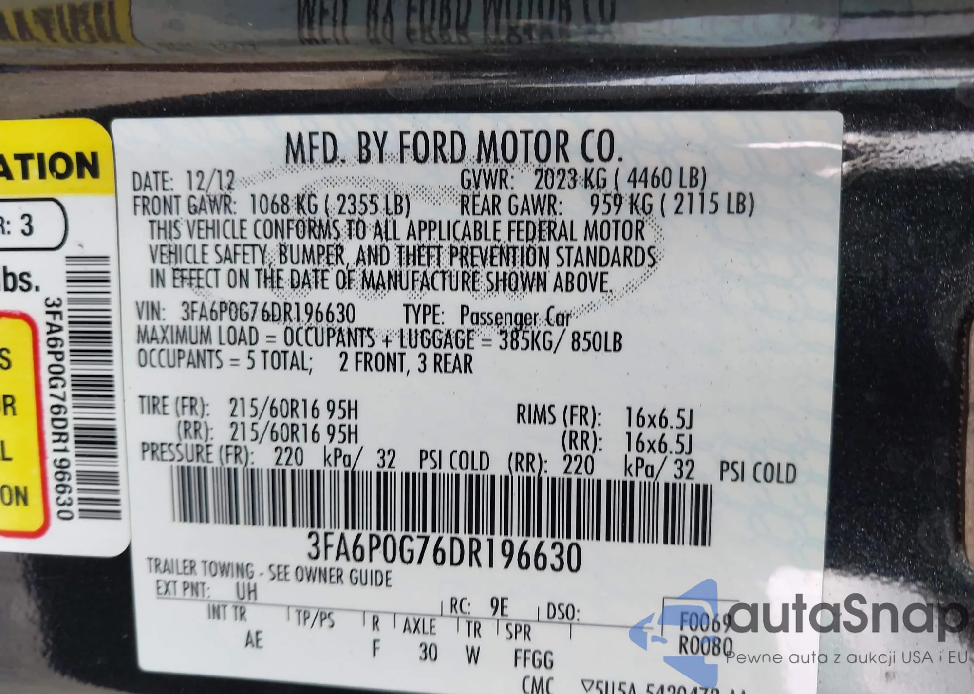 • VIN 3FA6P0G76DR196630