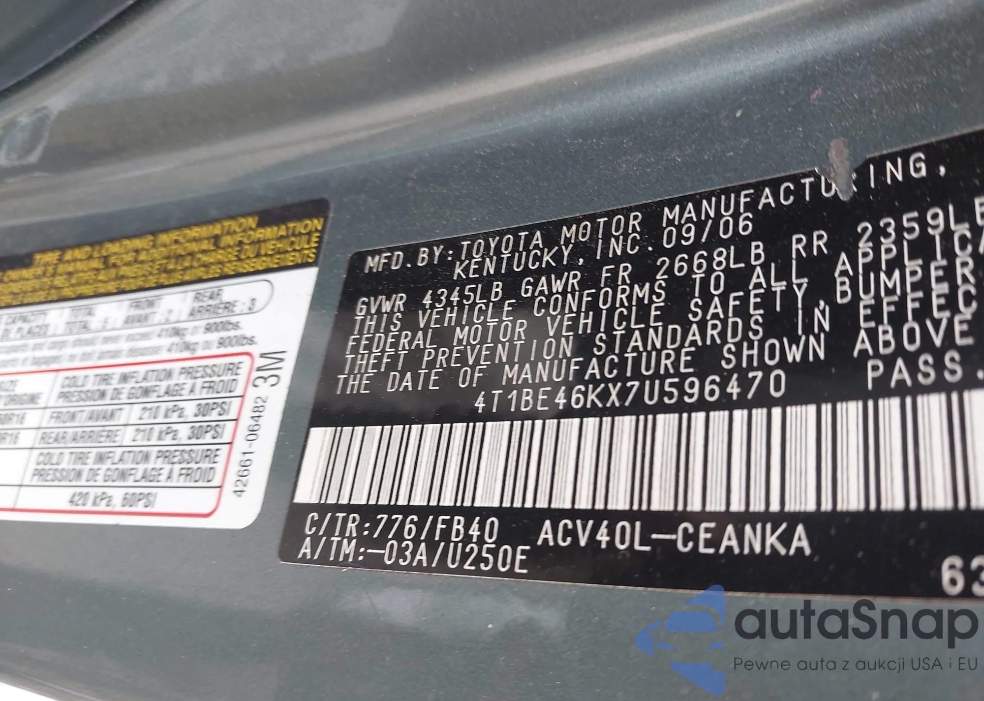 • VIN 4T1BE46KX7U596470