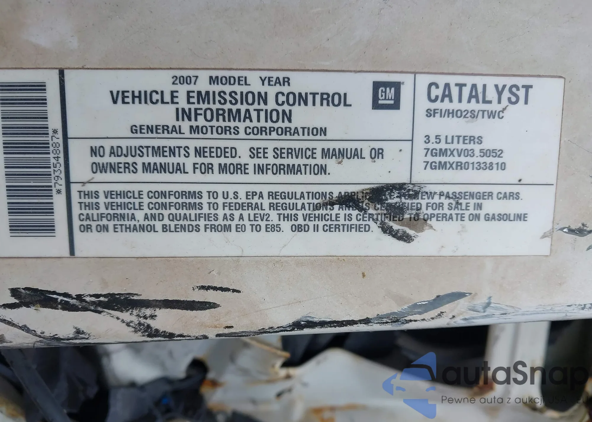 LOT: 43102805 VIN: 1HGFA16807L127156