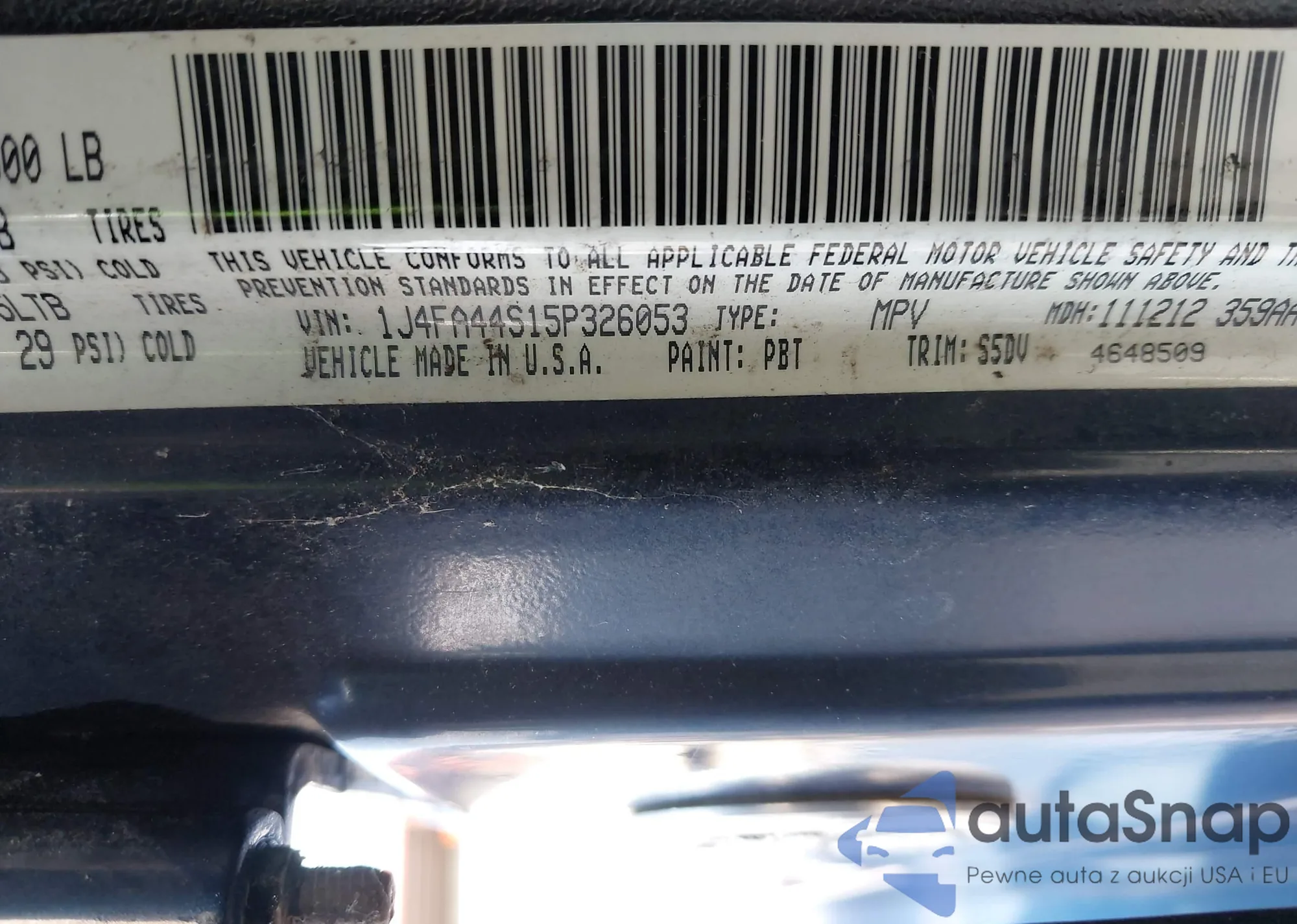 LOT: 42858619 VIN: 1J4FA44S15P326053