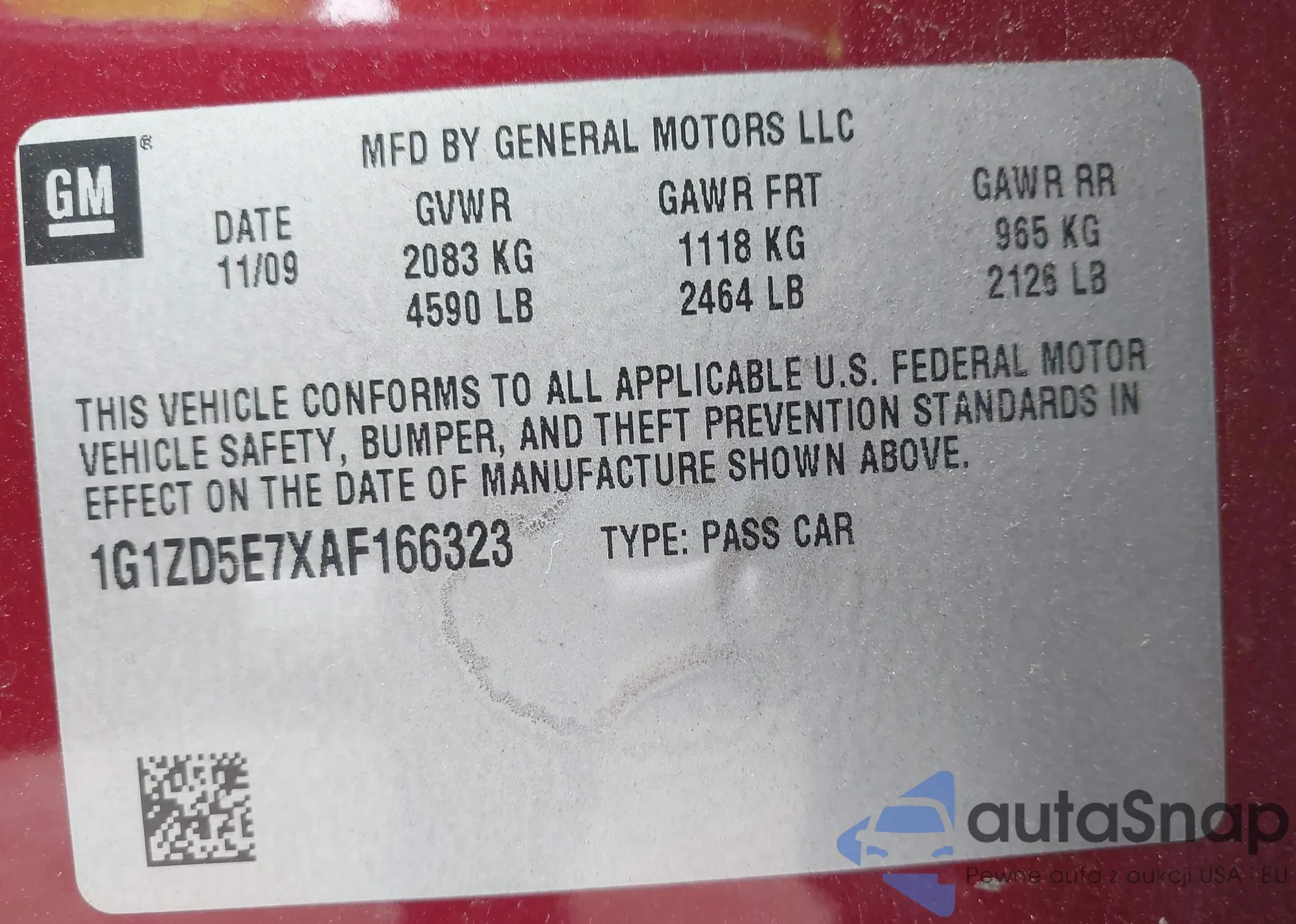 • VIN 1G1ZD5E7XAF166323
