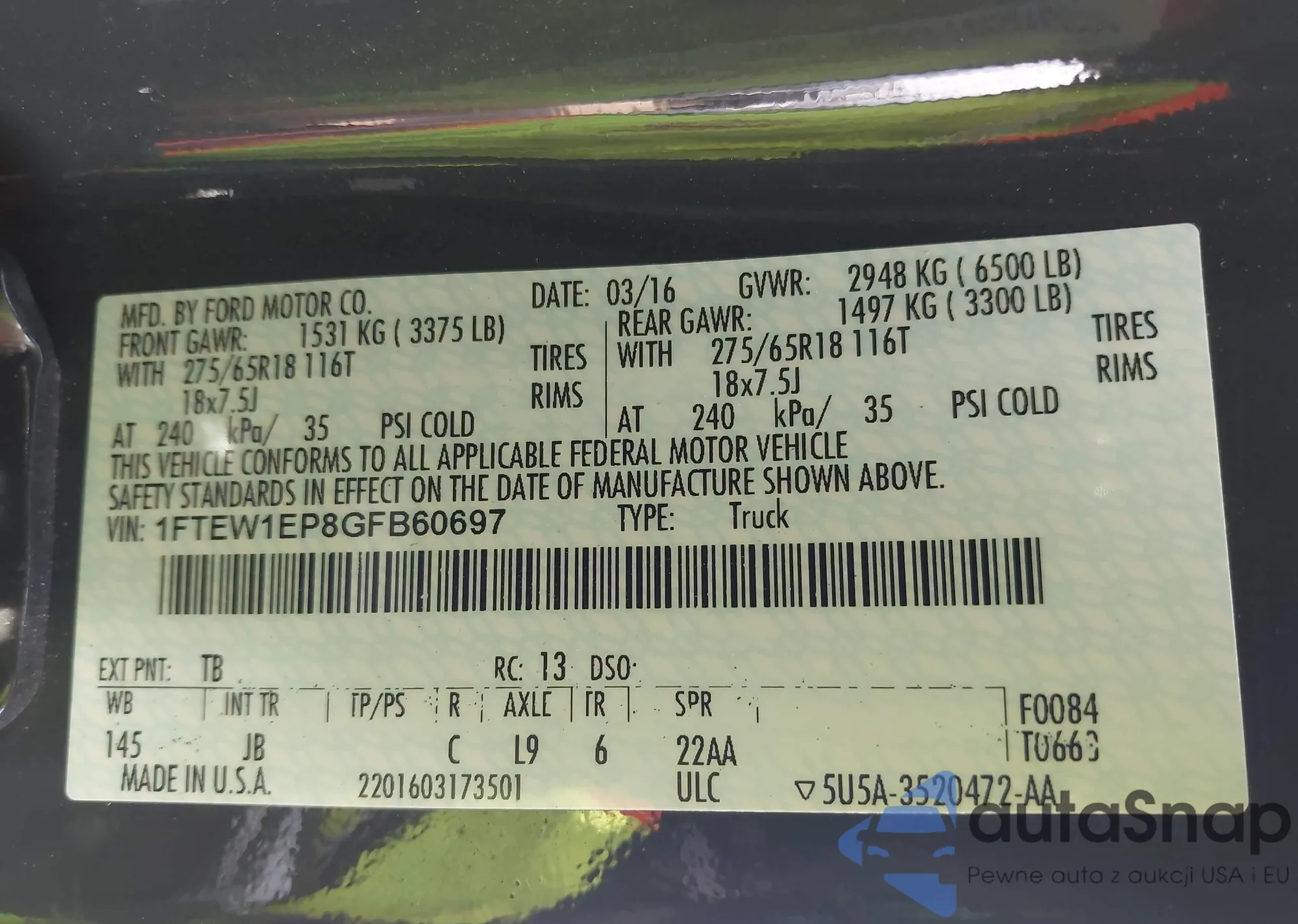 • VIN 1FTRF14W66NA25961