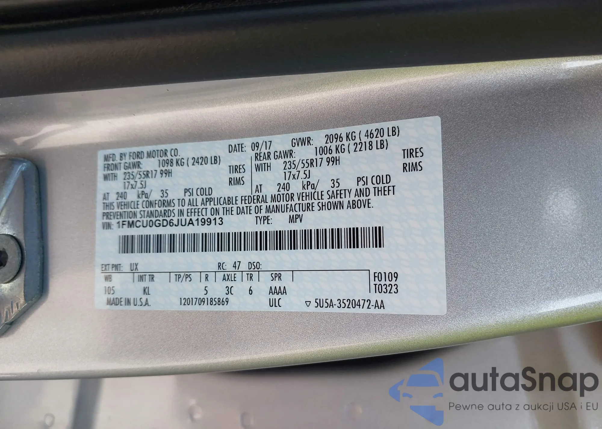 LOT: 43028373 VIN: 1FMCU0GD6JUA19913