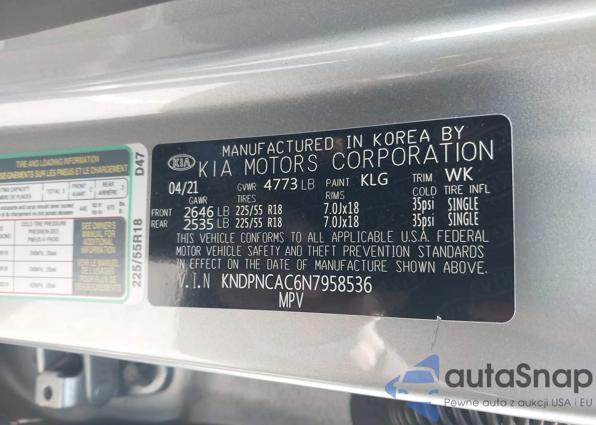 • VIN KNDPNCAC6N7958536